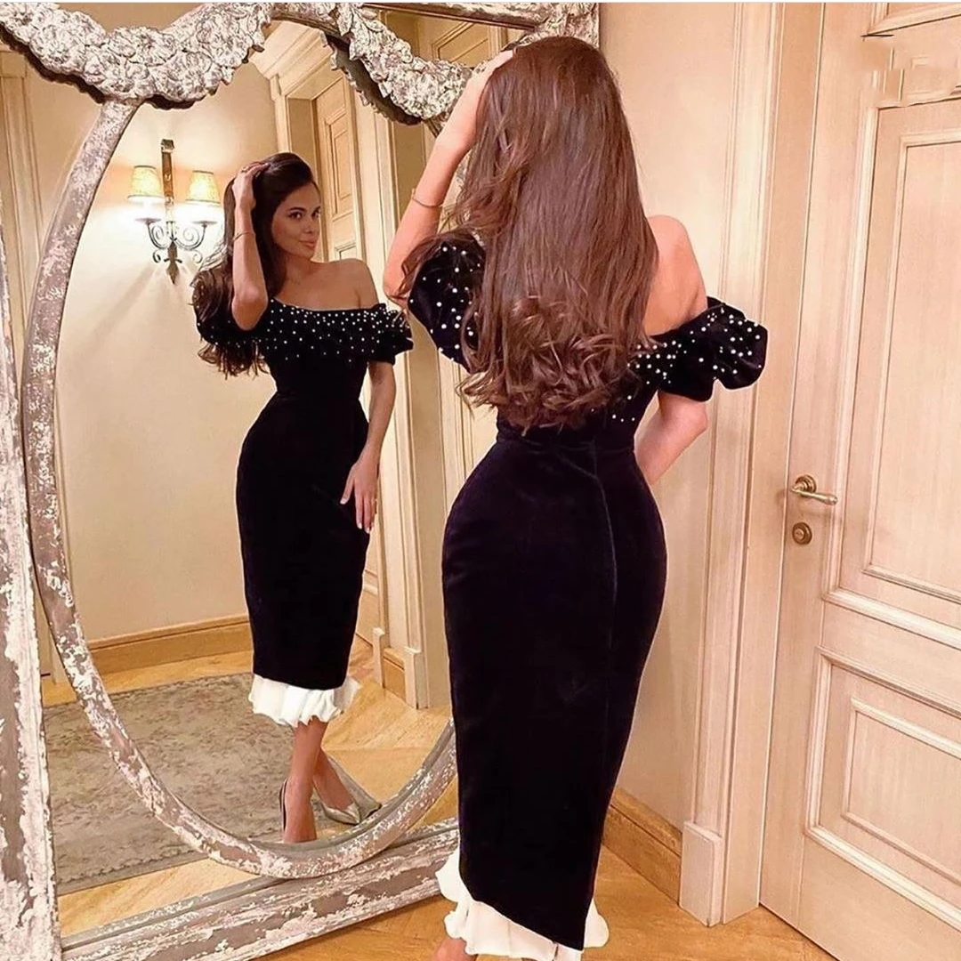 Черное вечернее платье в горошек, с открытыми плечами, с рюшами, с открытой спиной, длиной до щиколотки, для выпускного, из Дубая, на заказ, модель 2021
