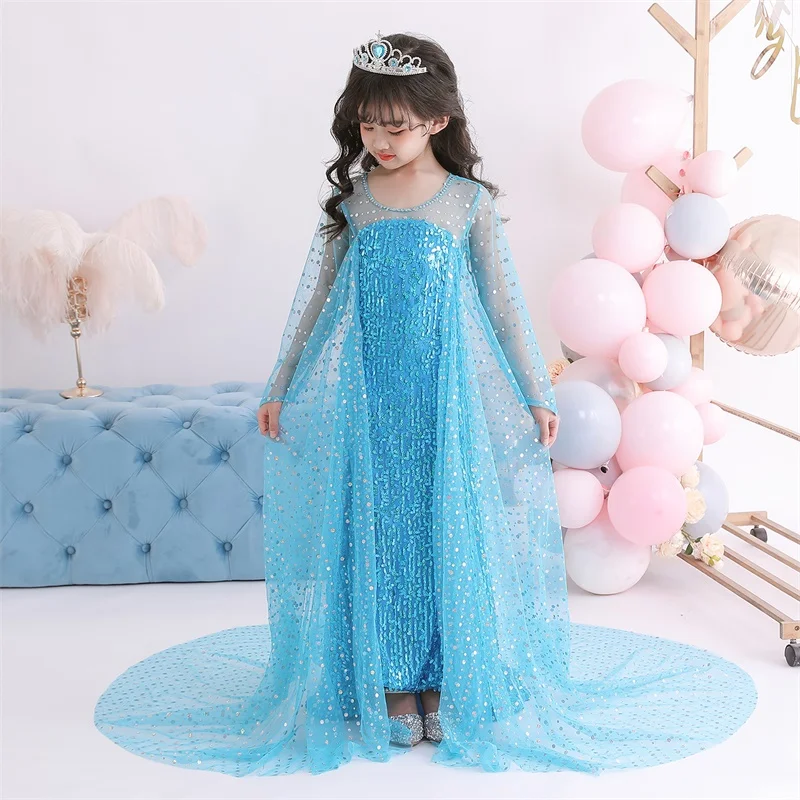 Платье принцессы для девочек, праздвечерние платье с блестками, снег 2, детское платье для девочек, рождественское платье, одежда для Хэллоуина