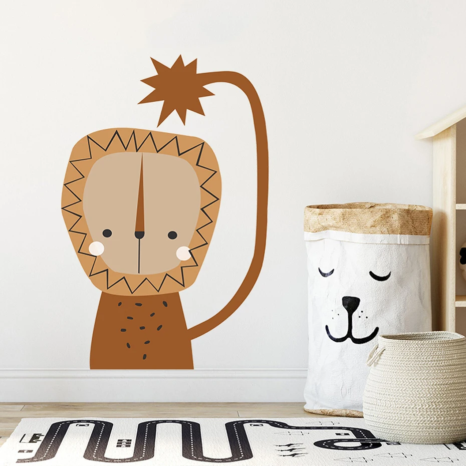 Мультяшные животные Лев Жираф тигр Детская Наклейка на стену съемны...
