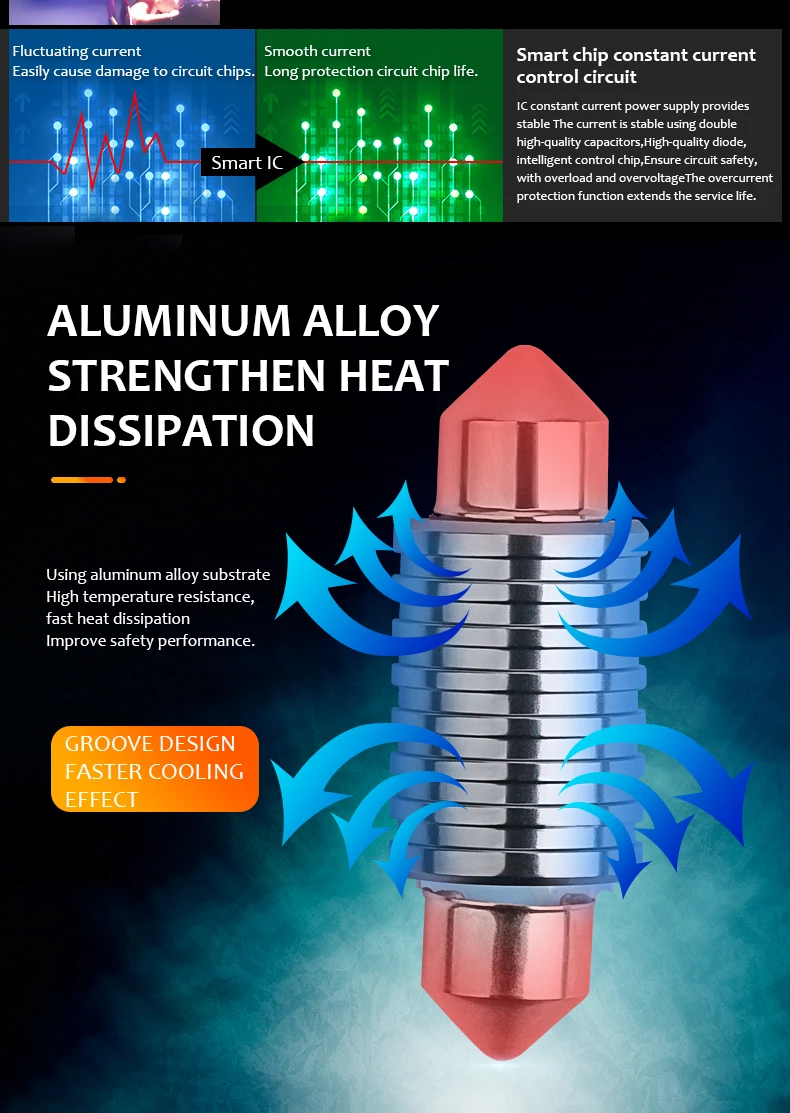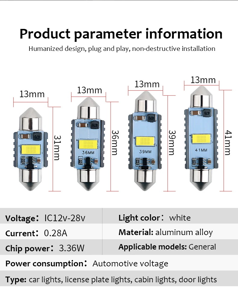 CSP чип алюминиевый Festoon Canbus без ошибок автомобильный Led 12-...