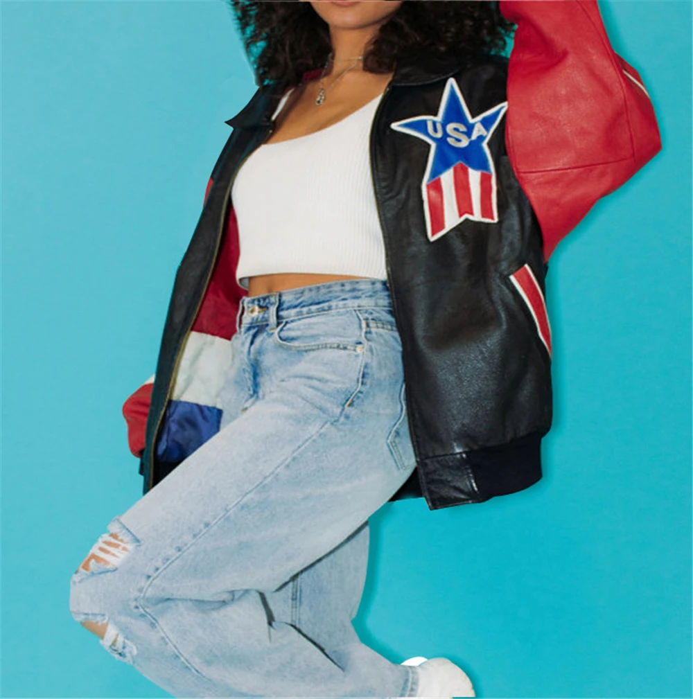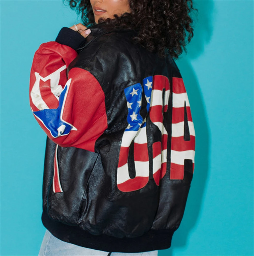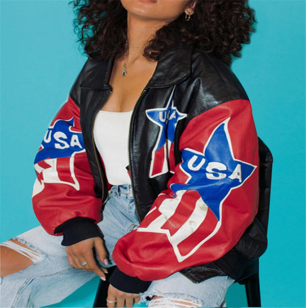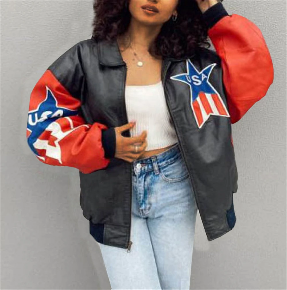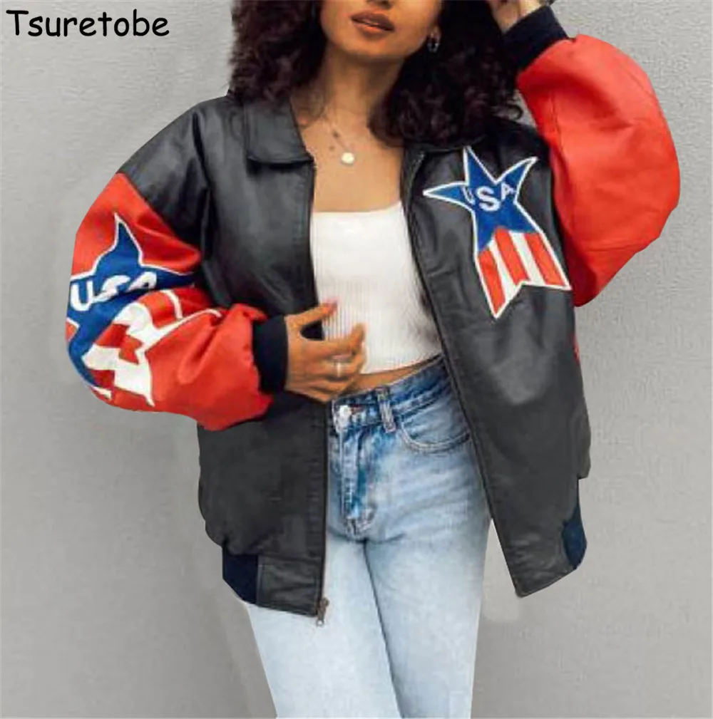 Tsuretobe с принтов в виде флажков куртка 2020, Женская обувь в стиле пэчворк зимняя одежда для женщин из искусственной кожи пальто для женщин с буквенным принтом размера плюс одежда