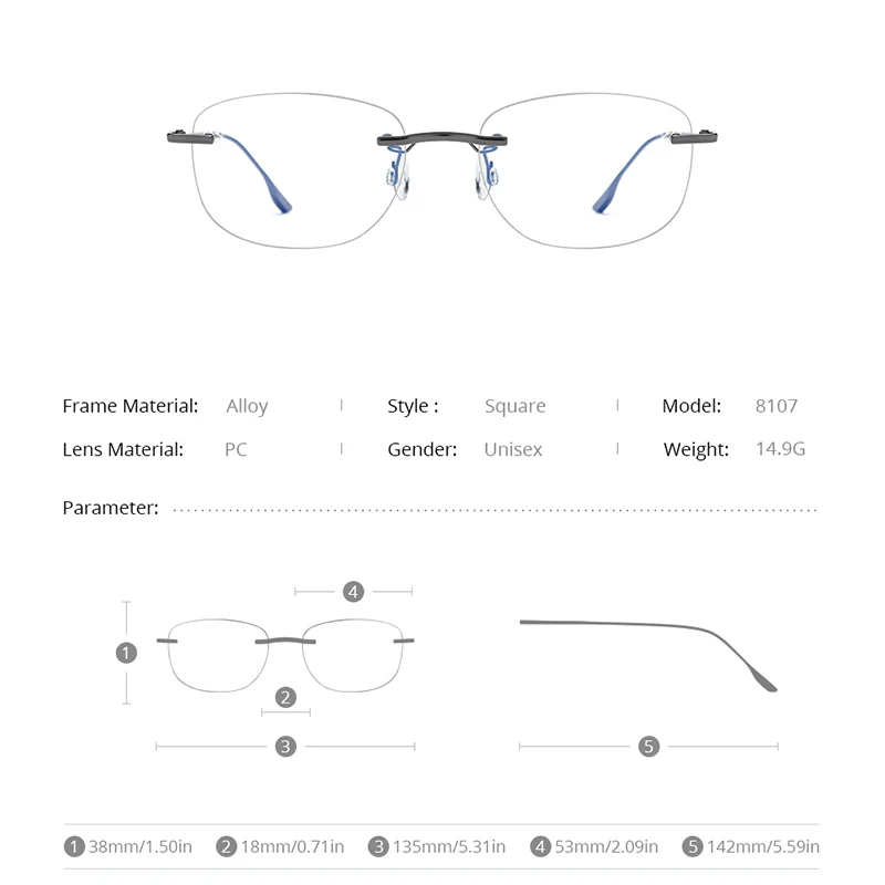Номер модели8107 High Quality Ultralight Light Weight Frameless Korea Eye Glasses