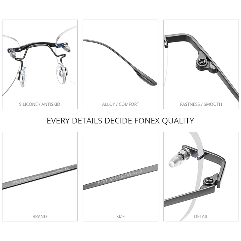 FONEX Оправа очков из титанового сплава Для мужчин 2020 Новый Для женщин Для мужчин Без Оправы рецепта квадратные очки Близорукость оптических 8107