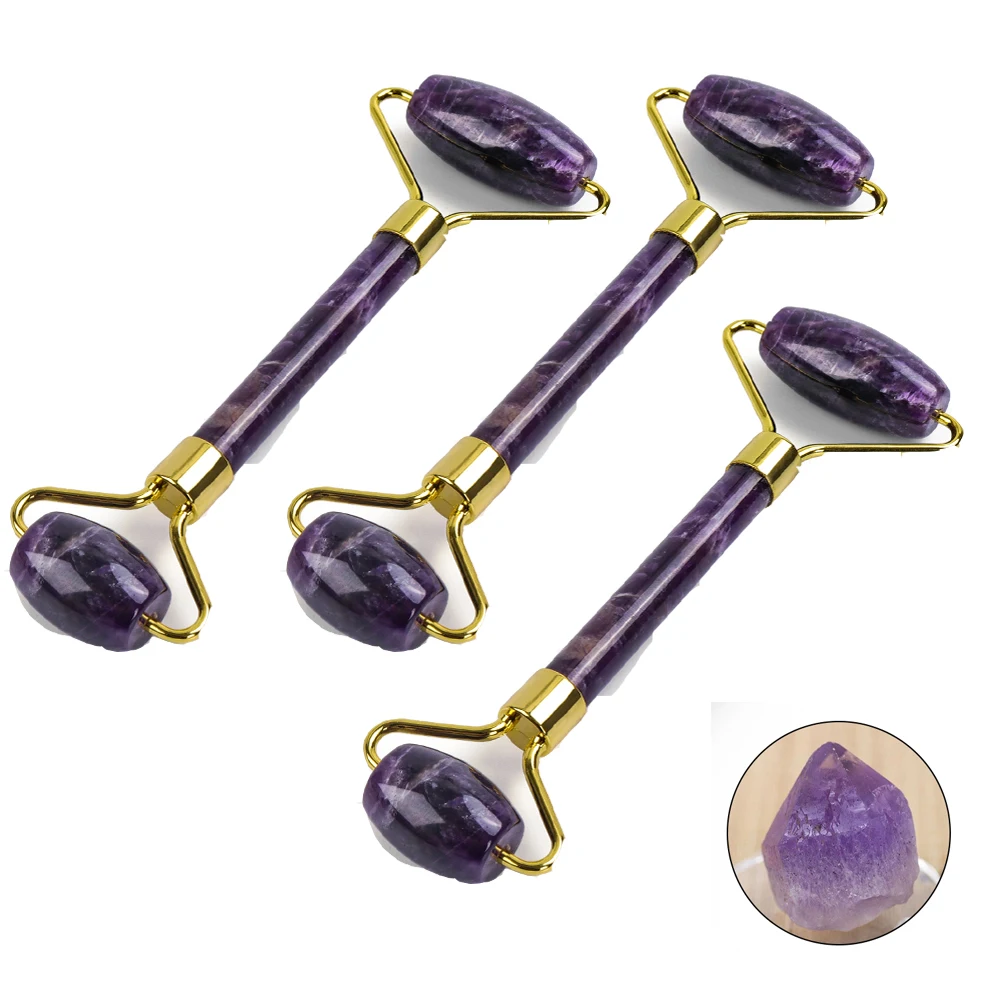 3 шт., роликовый массажер для лица, натуральный аметист, нефрит