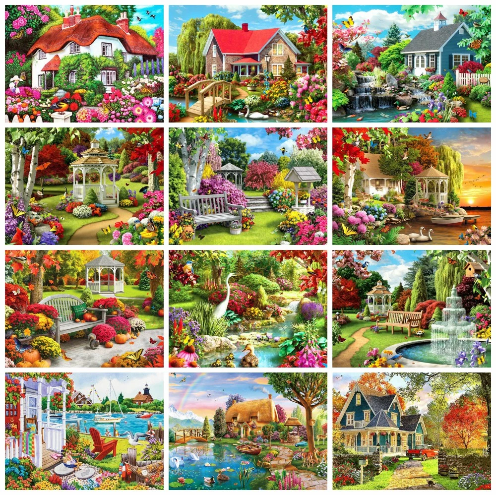 HUACAN полностью квадратная круглая дрель Алмазная вышивка пейзаж дом ремесло набор алмазная живопись сад ремесленный Декор для дома