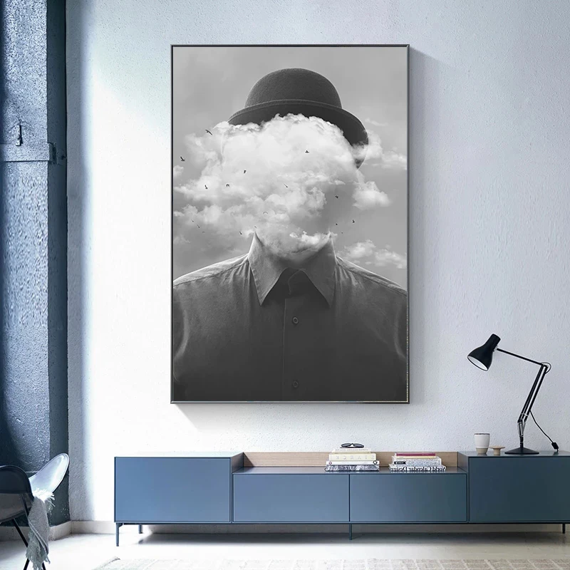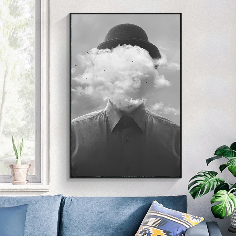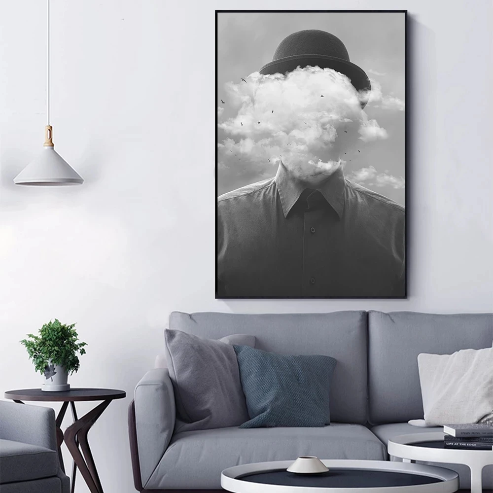 Surreal концепт человек с облаком Птицы Холст Картина черно-белые принты и плакаты настенные картины для гостиной домашний декор