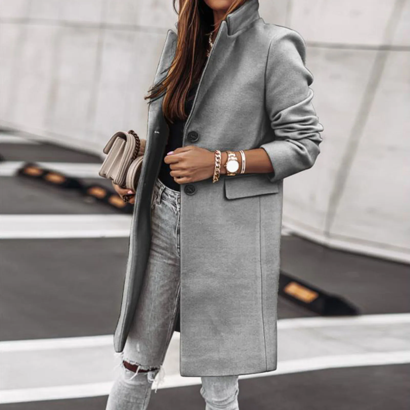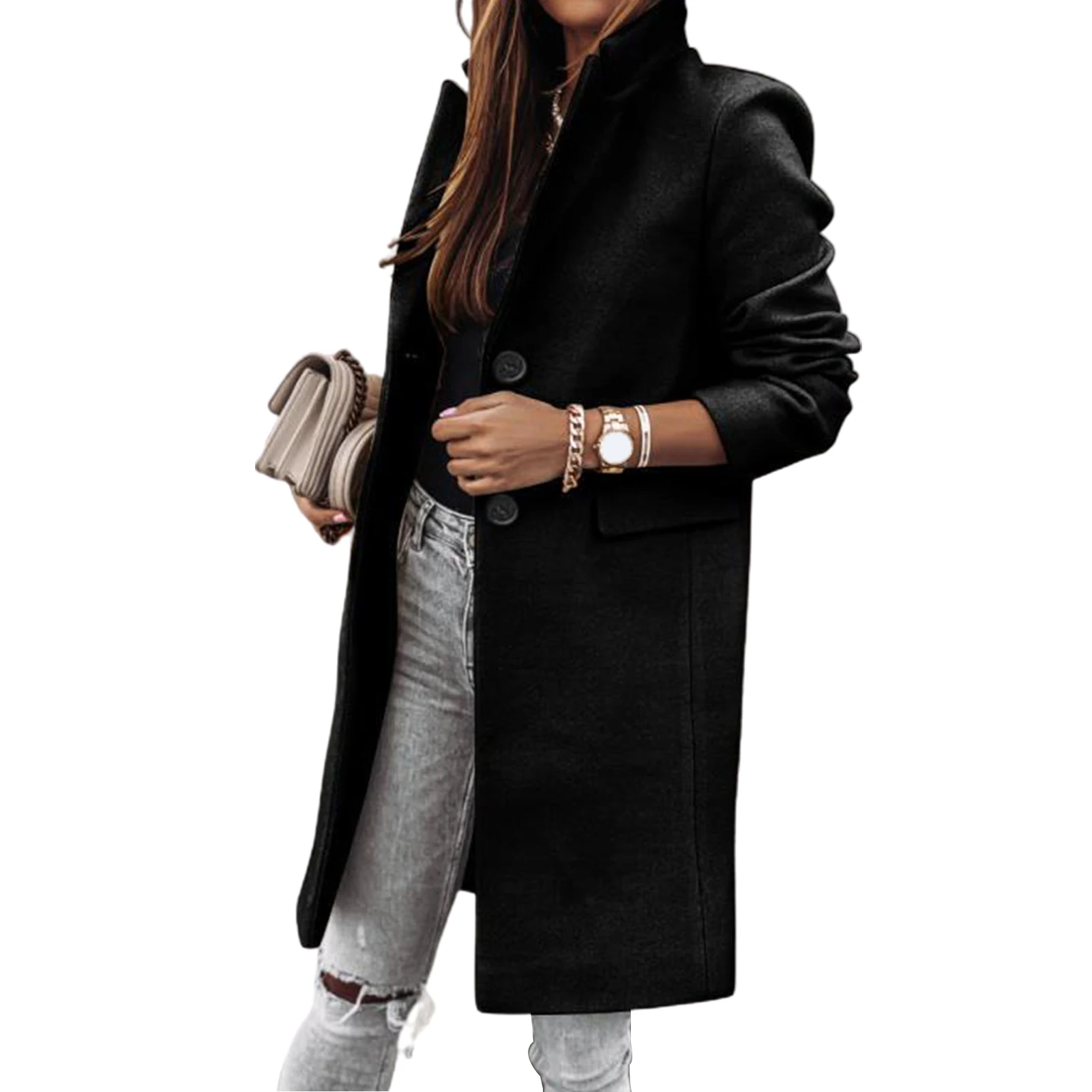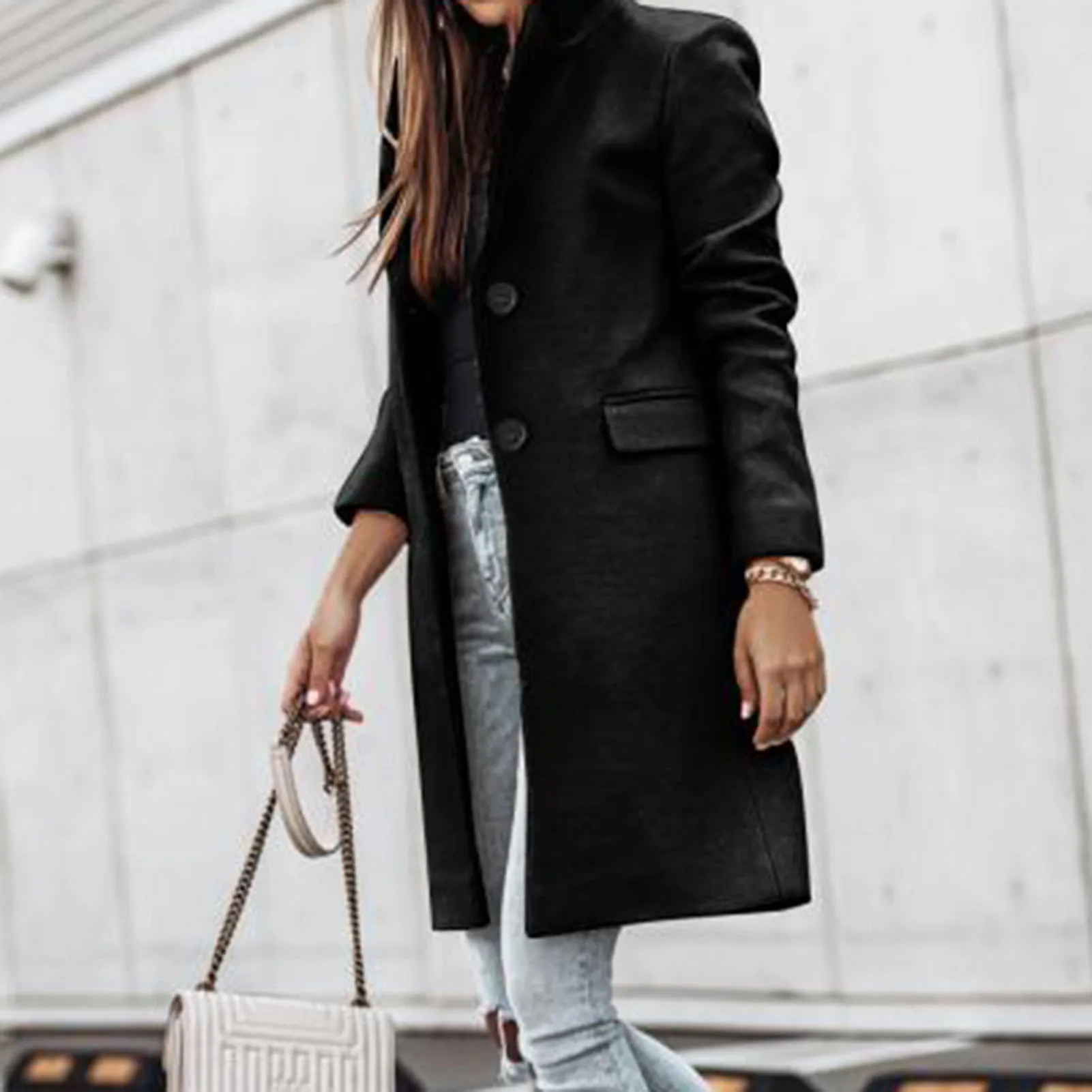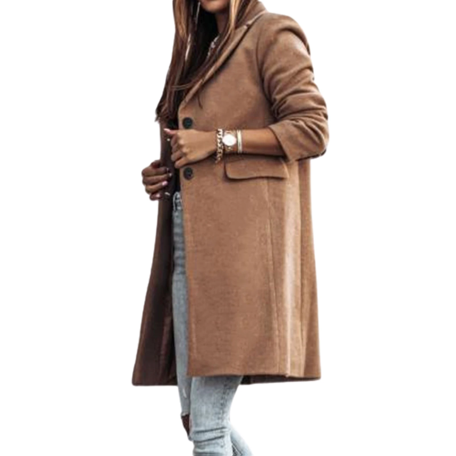 Винтажное Женское зимнее теплое пальто с длинным рукавом, пуговицами и отворотами, куртка средней длины, пальто, женская уличная одежда, элегантная одежда