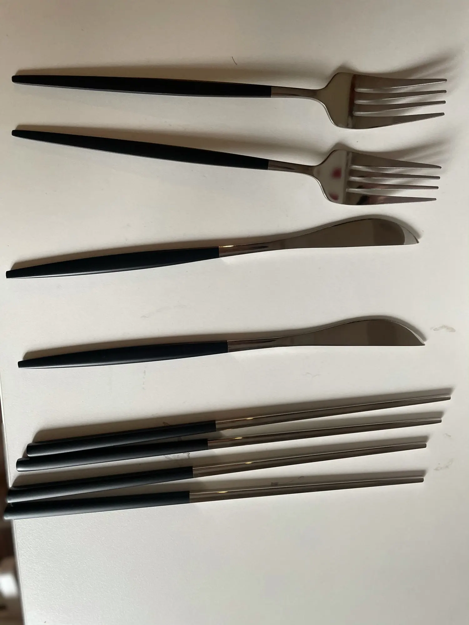 Набор столовых приборов из нержавеющей стали, черного и серебряного цвета