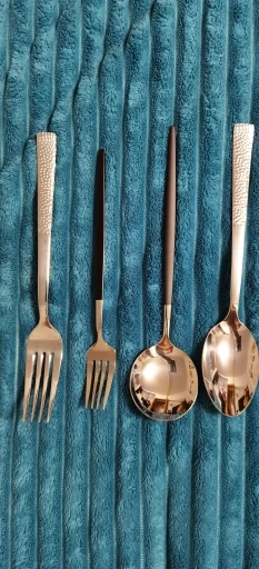 Вилки пришли погнутыми. Края у ложек очень плохо обработаны, все шершавые ((( очень жаль. Приборы красивые. Доставка была быстрой.