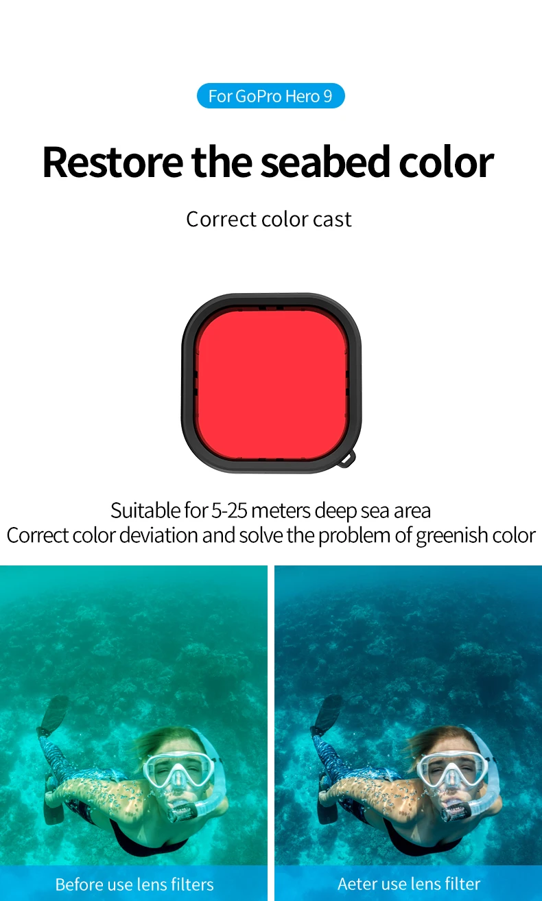 Водонепроницаемый чехол-фильтр для объектива для GoPro Hero 9 черной камеры