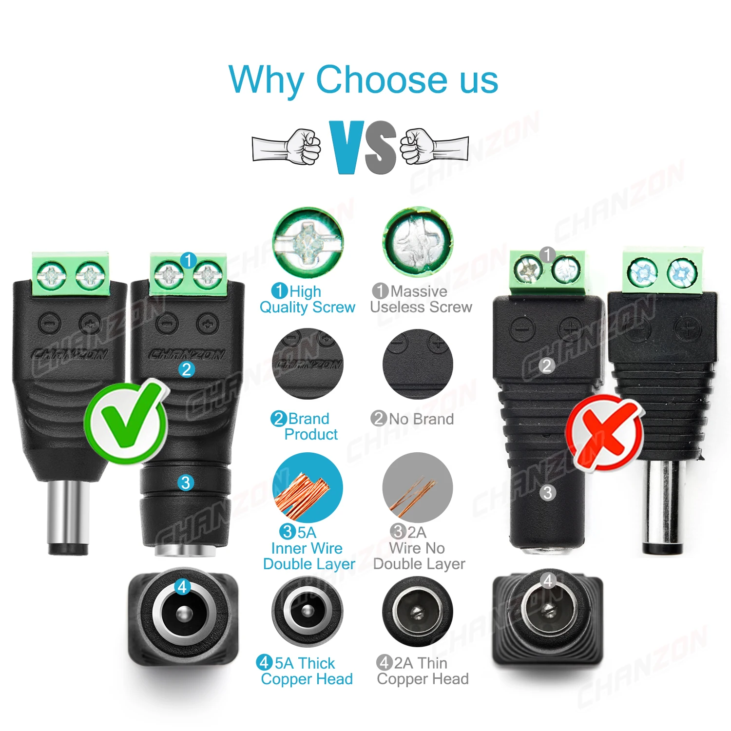 Разъем питания постоянного тока 12 В, 2,1 мм x 5,5 мм, гнездо папа, винтовой адаптер для светодиодных лент, подключения к камере видеонаблюдения, 10 шт.