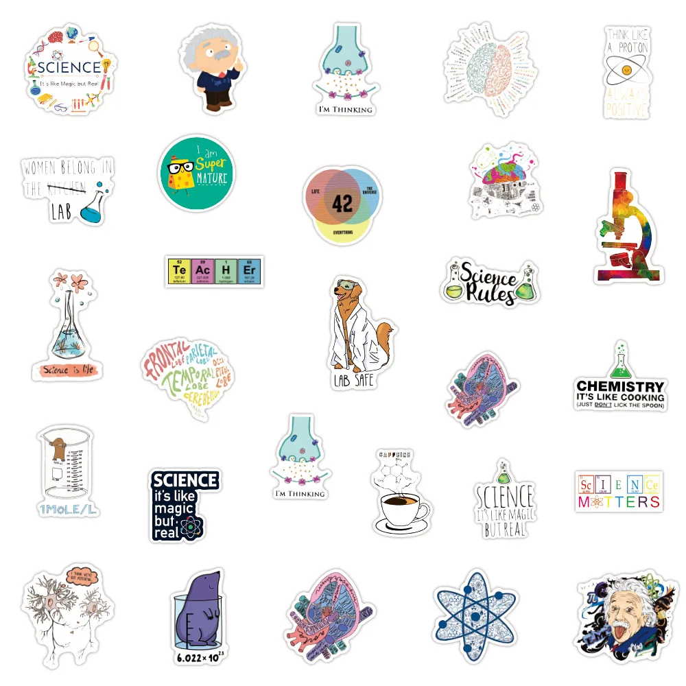 50 шт. Стикеры для научных экспериментов и химического программирования, стикеры сделай сам для ноутбука, телефона, чемодана, канцелярские принадлежности, водонепроницаемые стикеры в виде граффити, подарок