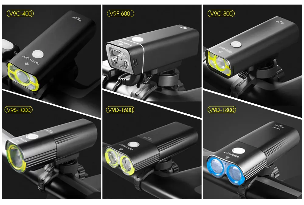 Бренд: GacironНазвание: профессиональная велосипедная фараМодель: V9C-400, V9F-600, V9C-800, V9S-1000, V9D-1600, V9D-1800Цвет: черный, серебристый, синийДиапазон: >200 мЕмкость аккумулятора:V9C-400, V9F-600, V9C-800 (2500 мАч)V9S-1000 (4500 мАч)V9D-1600 (5000 мАч)V9D-1800 (6700 мАч)