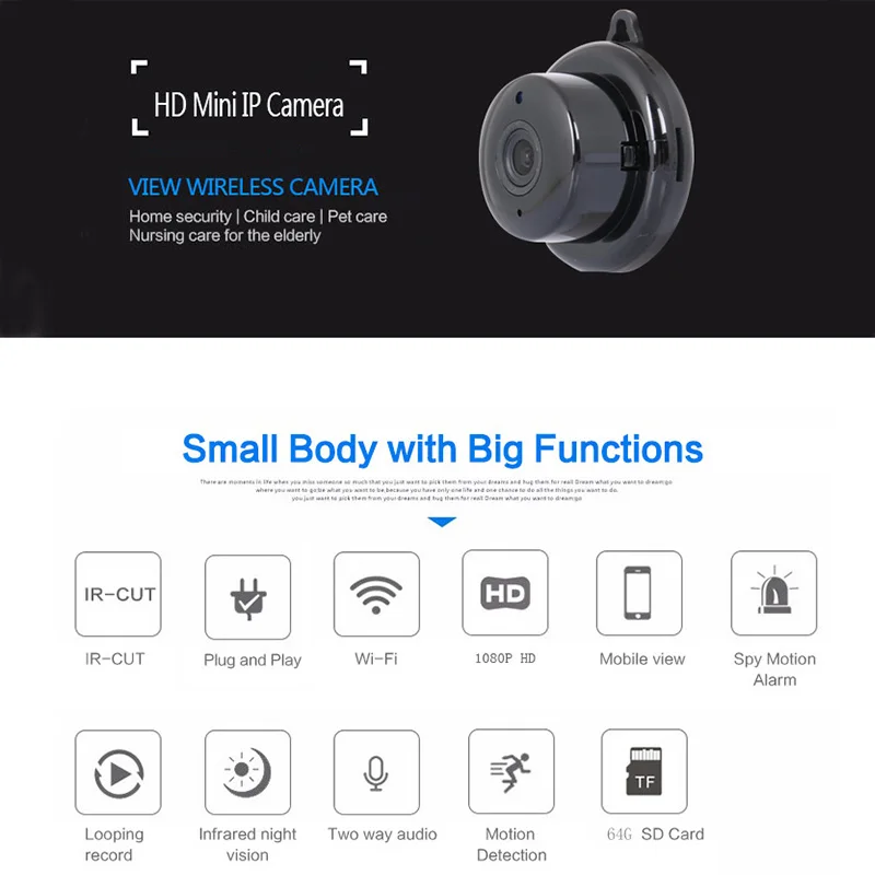 Мини HD 1080P Wifi ip-камера беспроводная домашняя камера ночного видения двухстороннее аудио Обнаружение движения детский монитор камера