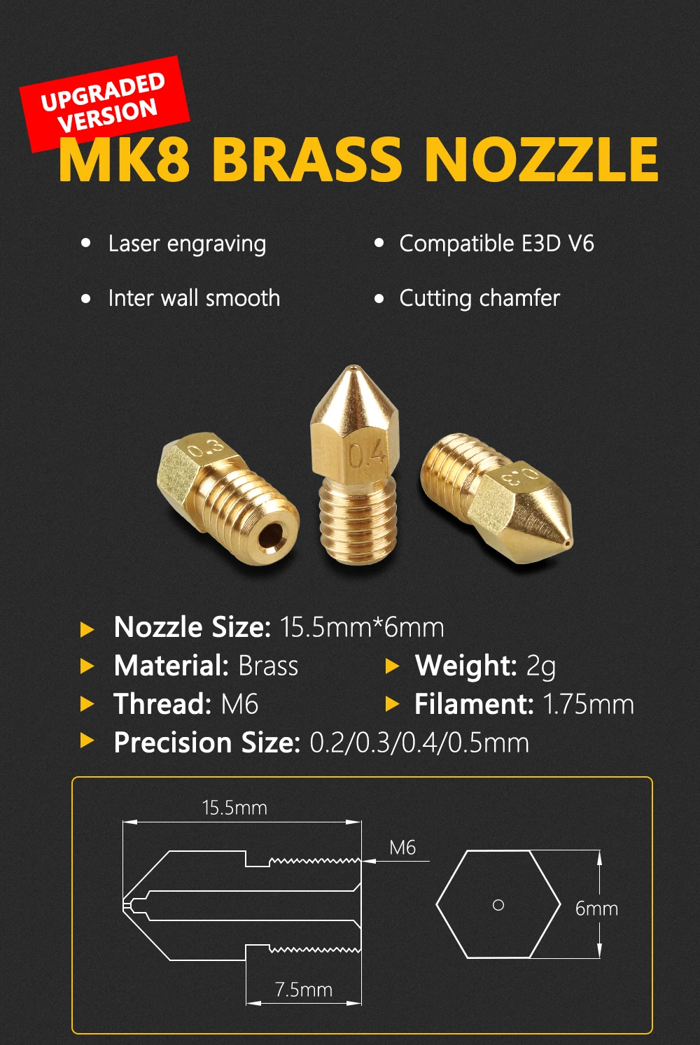 3DSWAY 10 шт.лот 3D части сопло для 3д принтера Buse Imprimante 3D MK8 латунная насадка M6 V5 V6 Hotend J-head сопла 1,75 мм для CR-10 Эндер 3