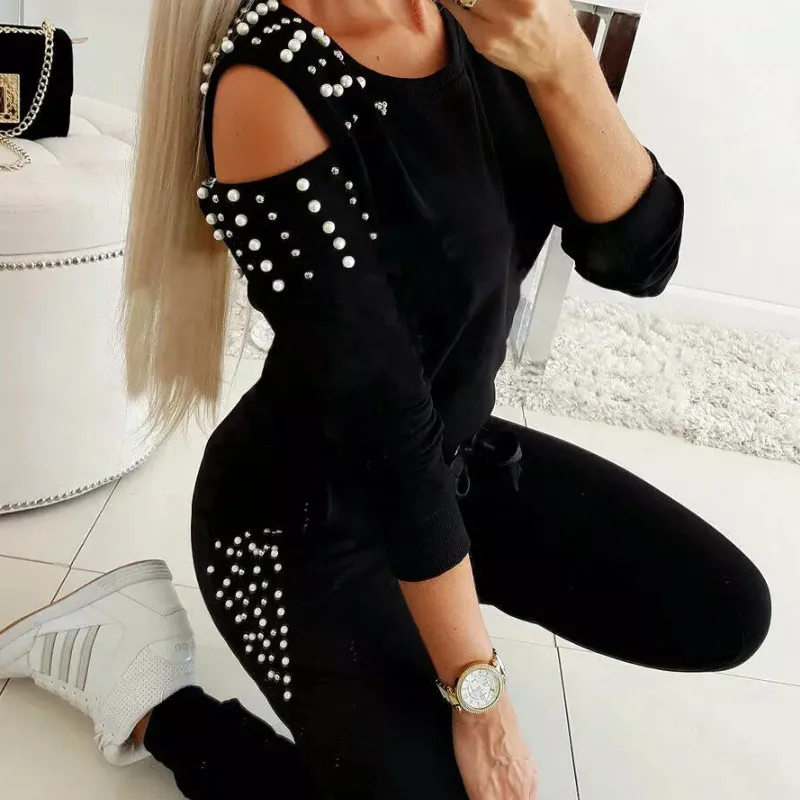 Спортивный костюм для бега Женский, с длинным рукавом и жемчугом
