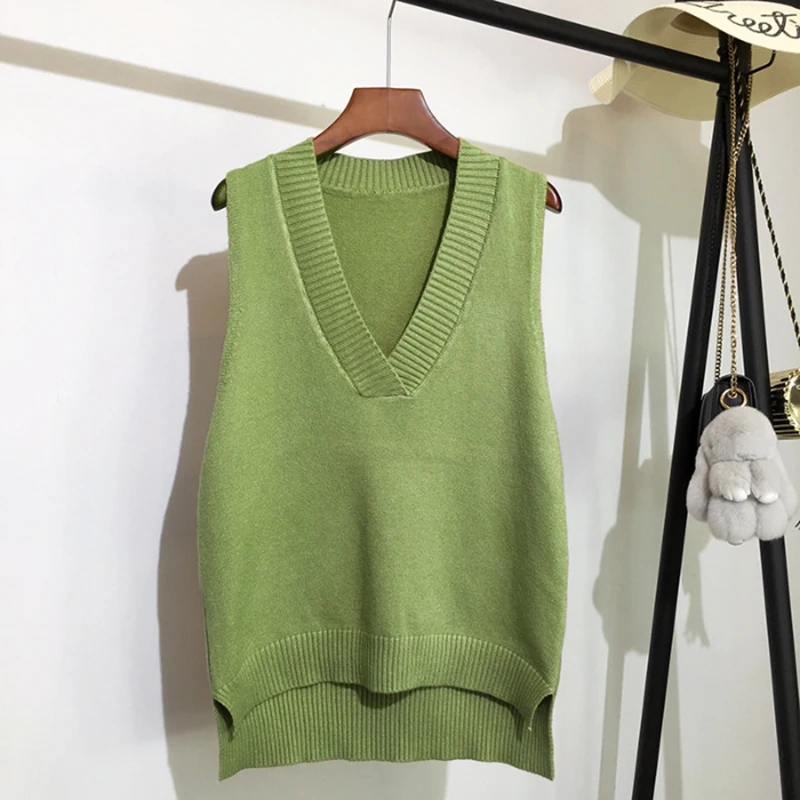 Женский вязаный жилет с V-образным вырезом, свободный свитер без рукавов в Корейском стиле, Осень-зима 2020