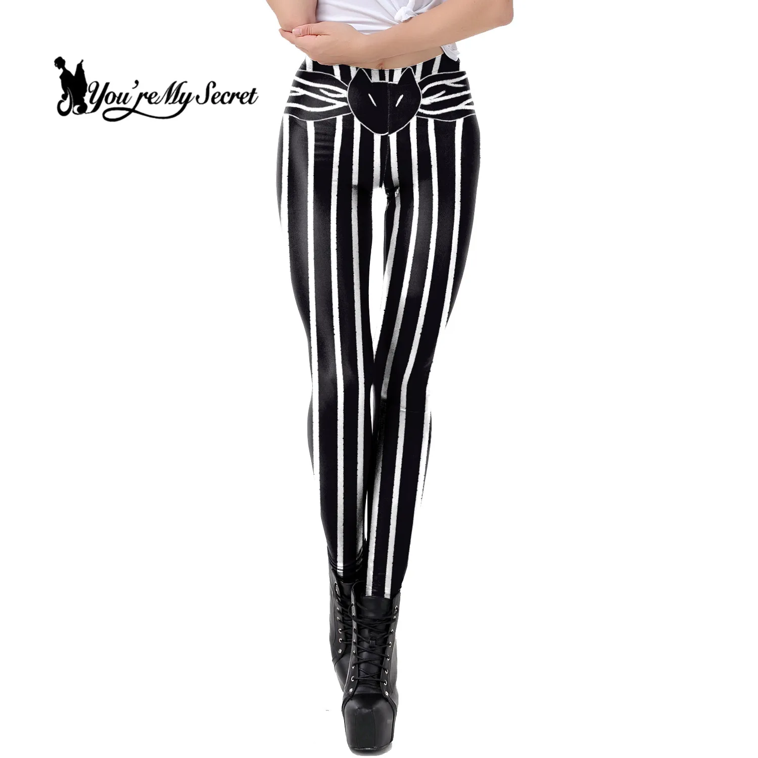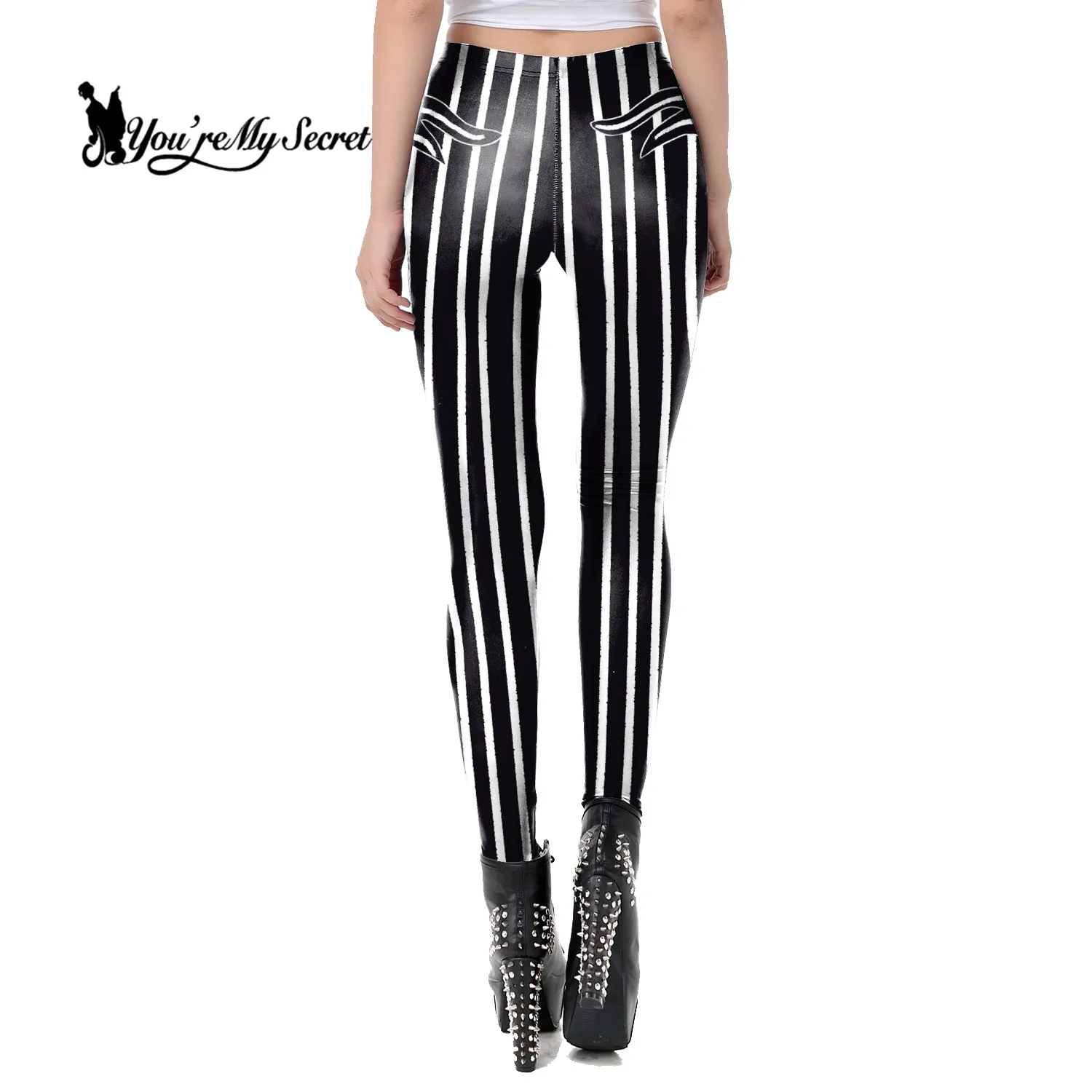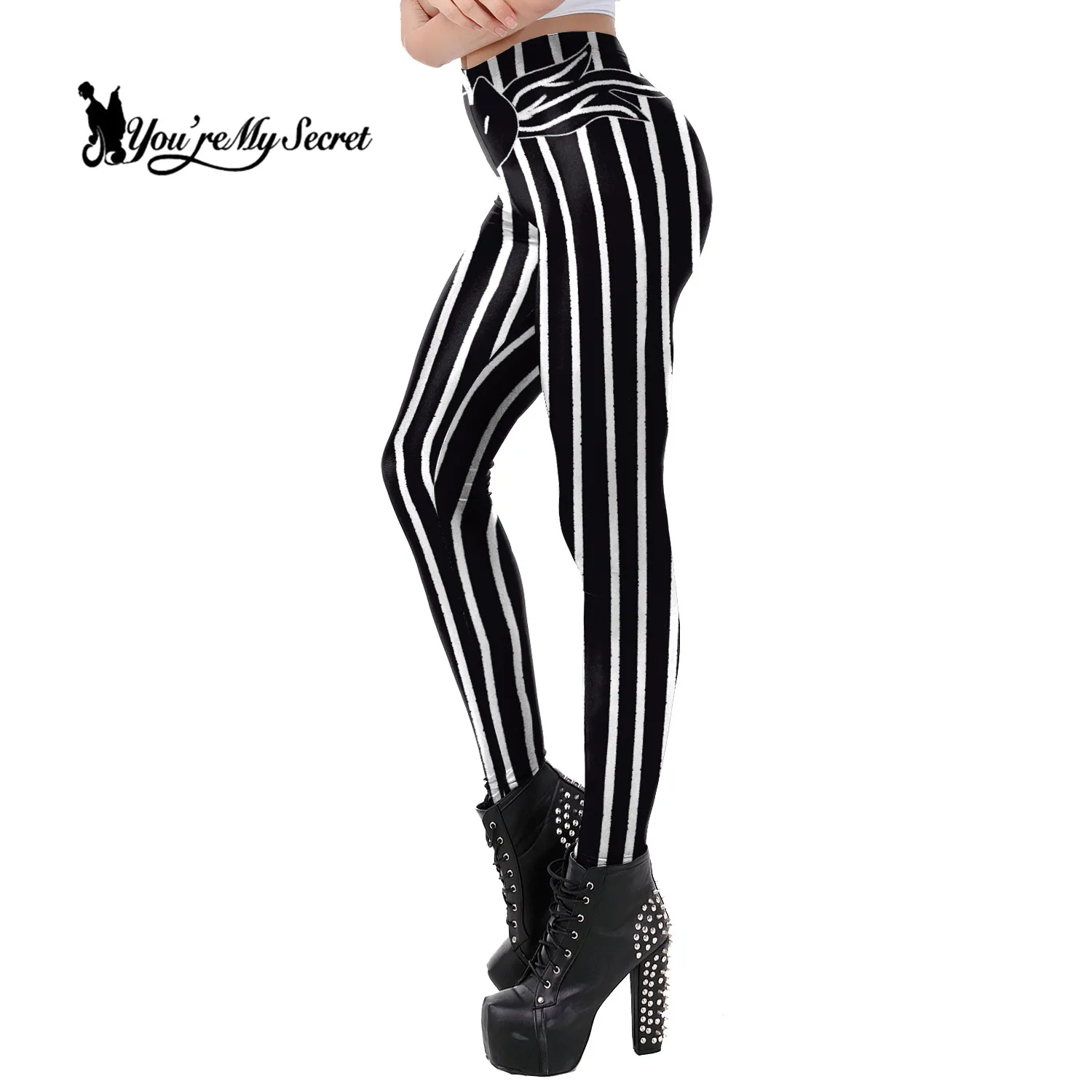 Женские леггинсы с завышенной талией ты мой секрет, в черно-белую полоску, с цветным рисунком, на Хэллоуин, из мягкой ткани, женские для фитнеса