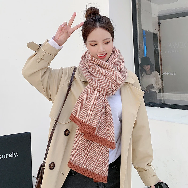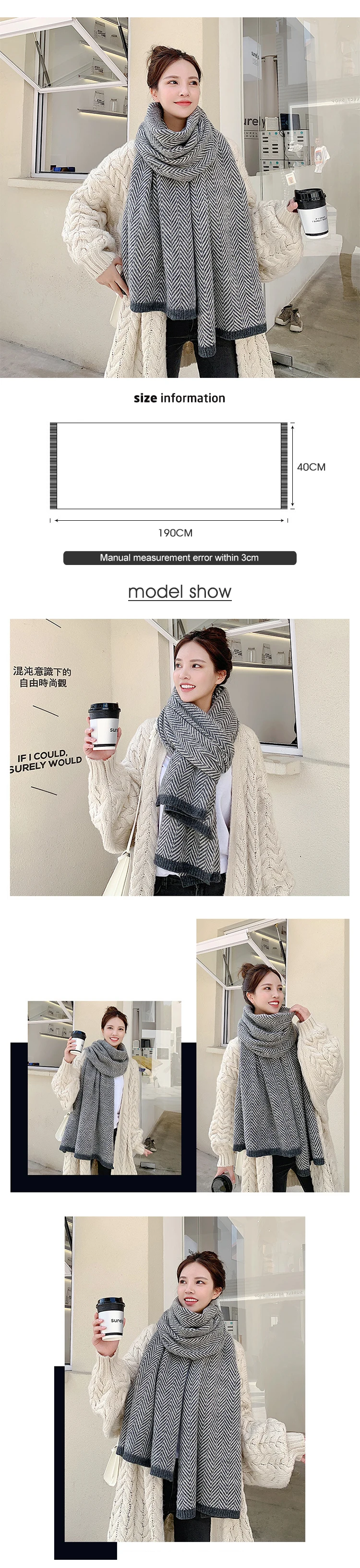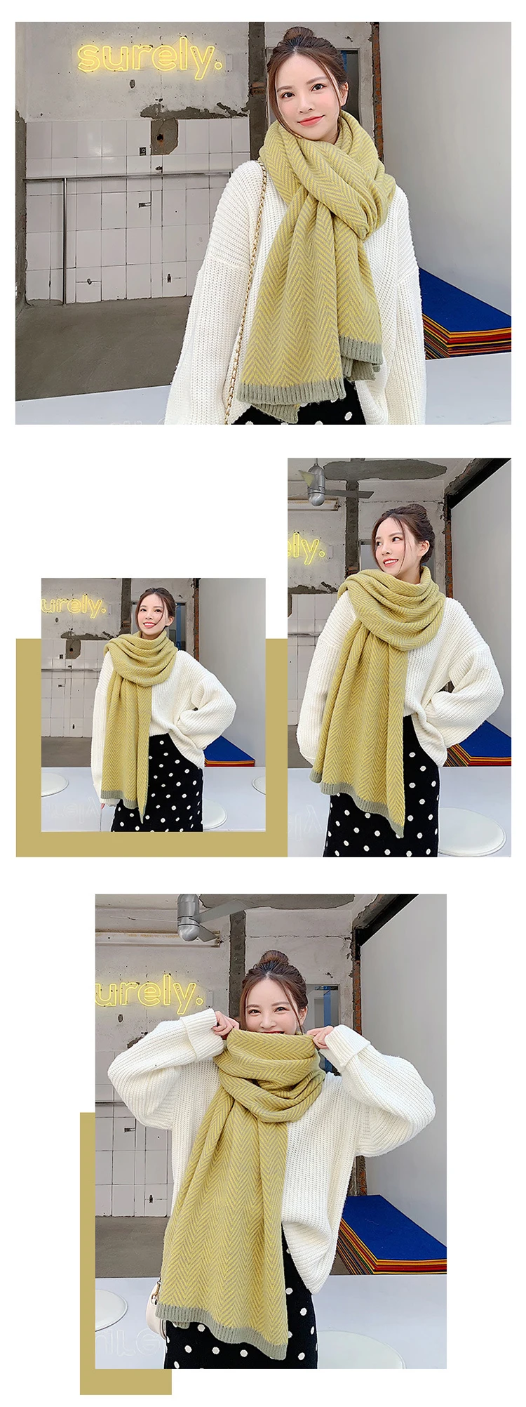 Шарф женский из искусственного кашемира, винтажный Повседневный Универсальный вязаный удобный теплый толстый длинный женский зимний уличный сладкий толстый шарф в полоску