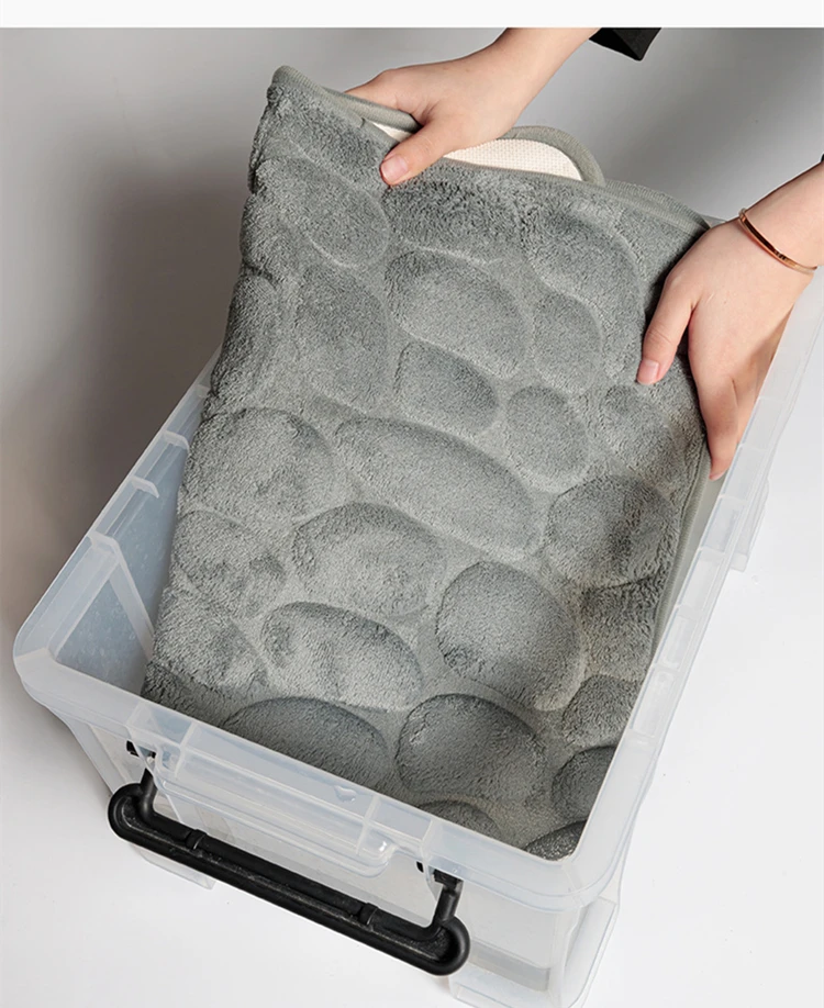 Материал: поверхность из кораллового флиса + пена с эффектом памяти + нижняя часть SBRРазмер: 40*60 см 50*80 смПрименение: коврик для кухни, ванной комнаты, туалетаОсобенности: * поверхность из кораллового флиса, мягкая на ощупь* Внутренняя часть заполнена пеной с эффектом памяти, толщина около 1,5 см* Дно из материала SBR, делает пол отделение для сухого и мокрого и эффективную нескользящую функцию.* Рельефный узор из булыжника, 3d-эффект