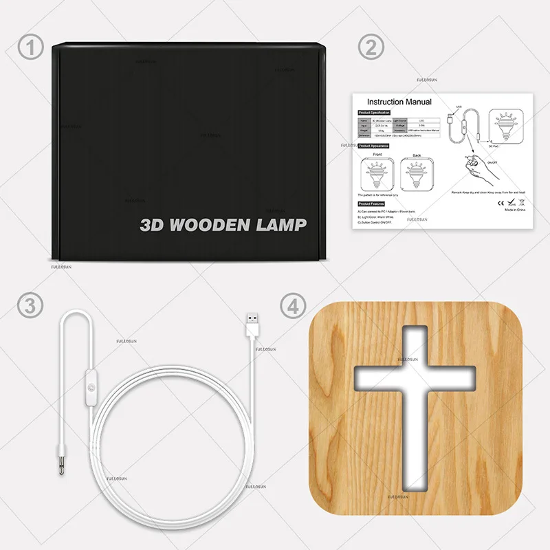 Светодиодный ночсветильник 3D usb-накопитель в виде деревянного Кре...