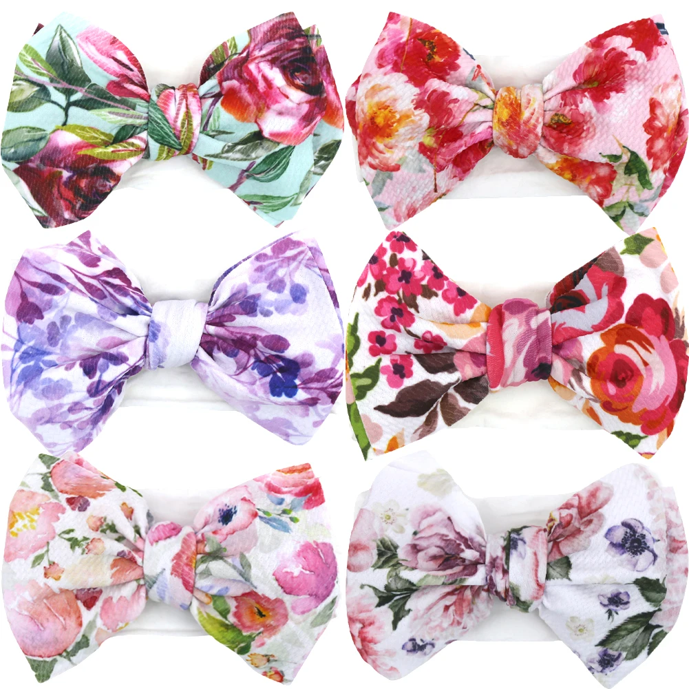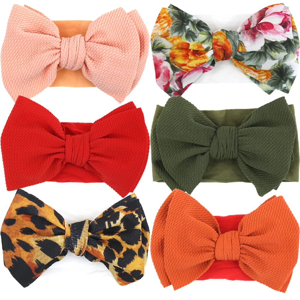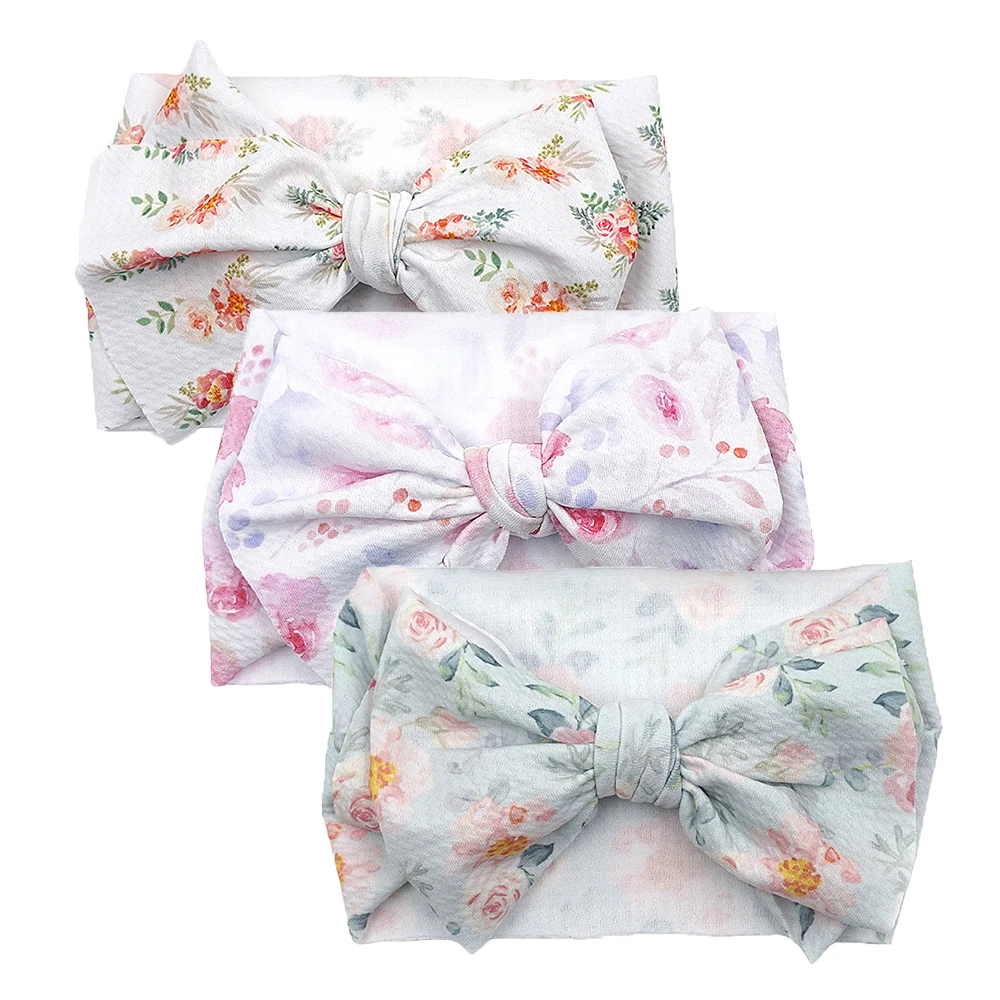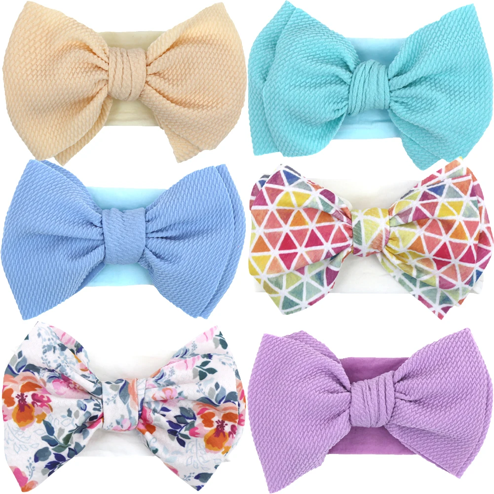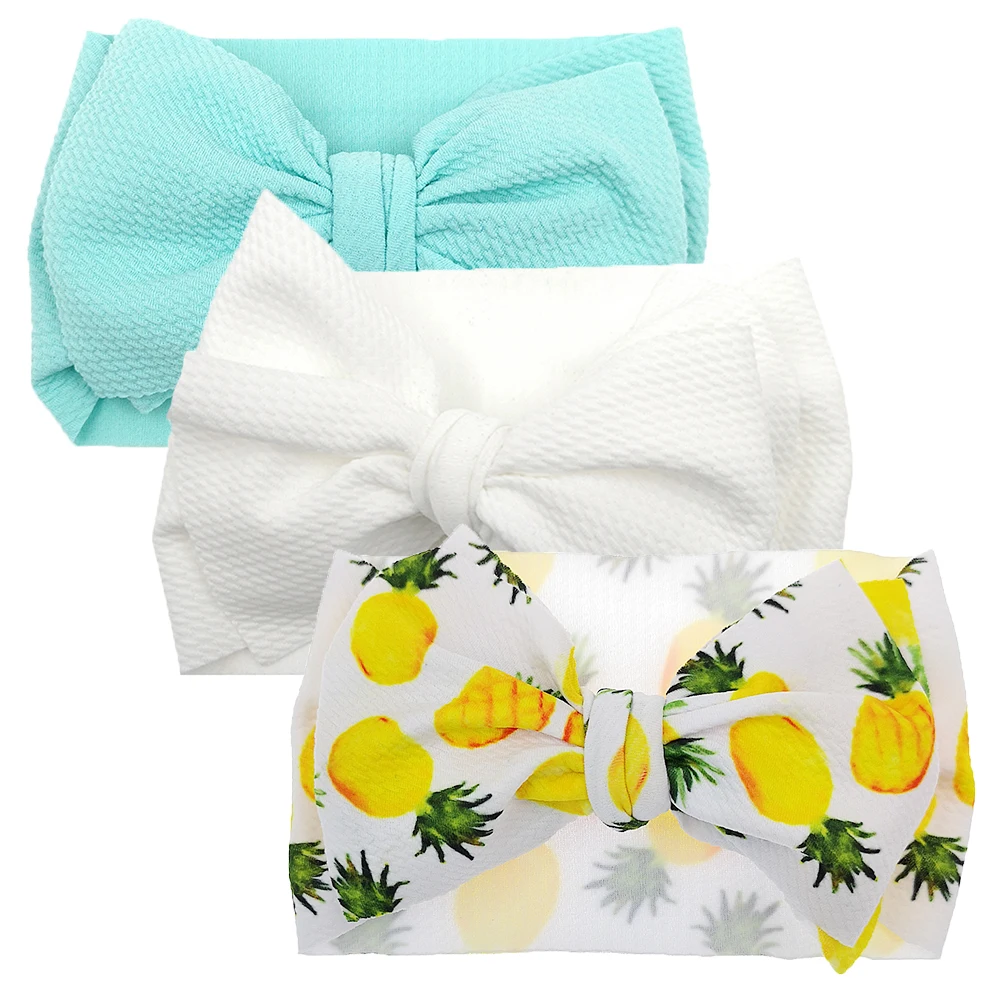 3 шт.лот, вафельная ткань с цветочным принтом, повязка на голову с бантом, тюрбан, нейлоновая эластичная лента для волос, аксессуары для новорожденных девочек