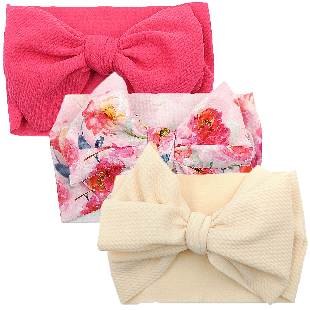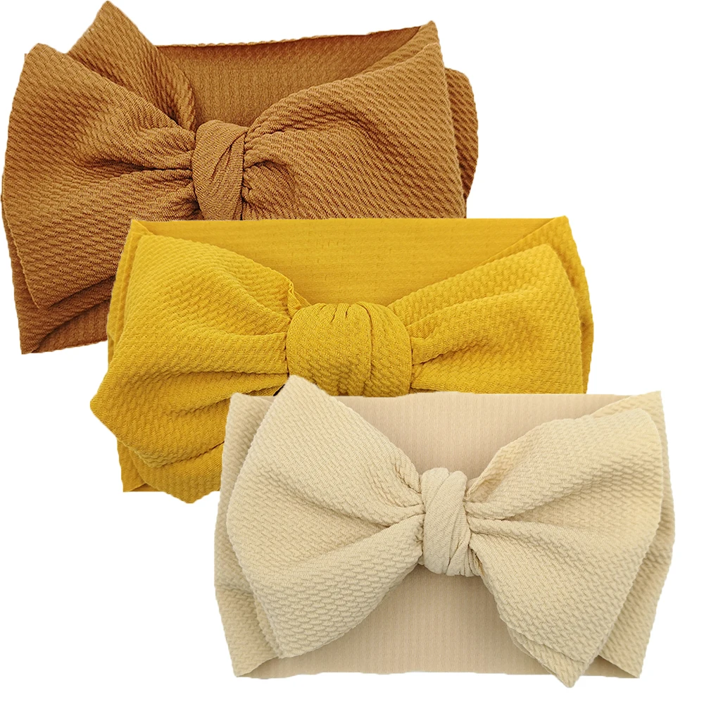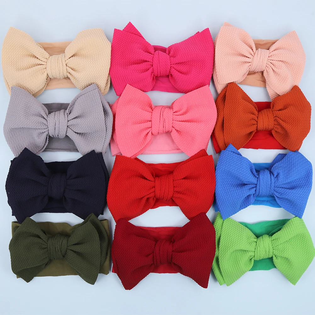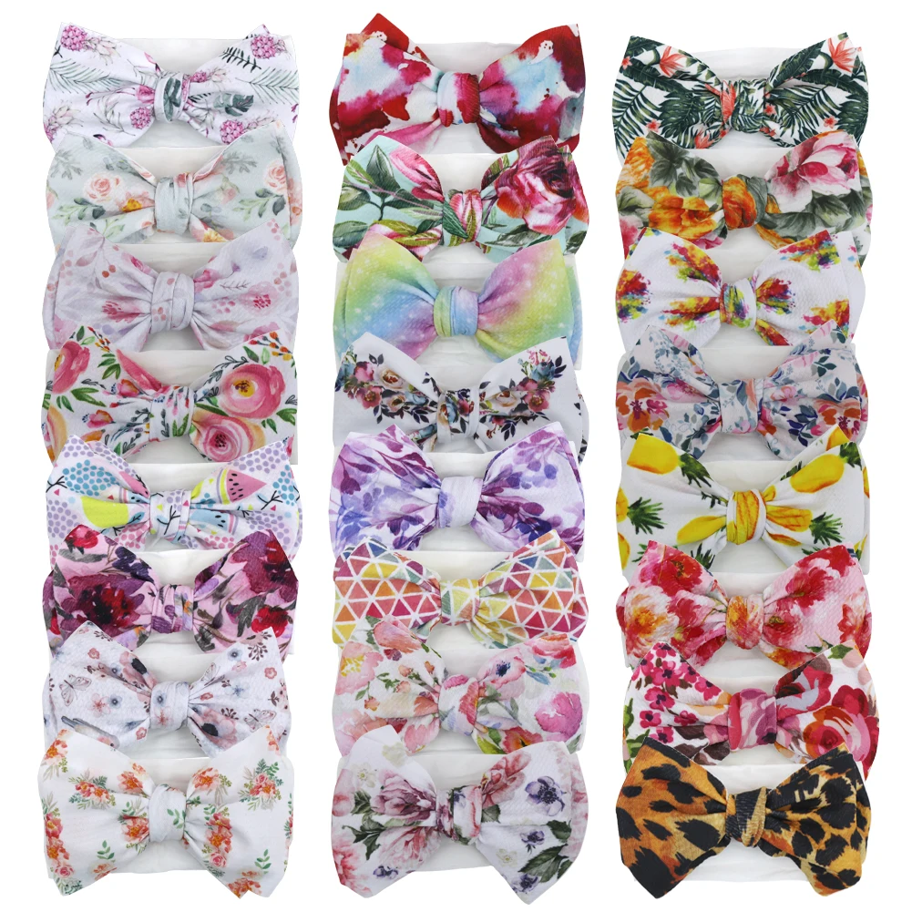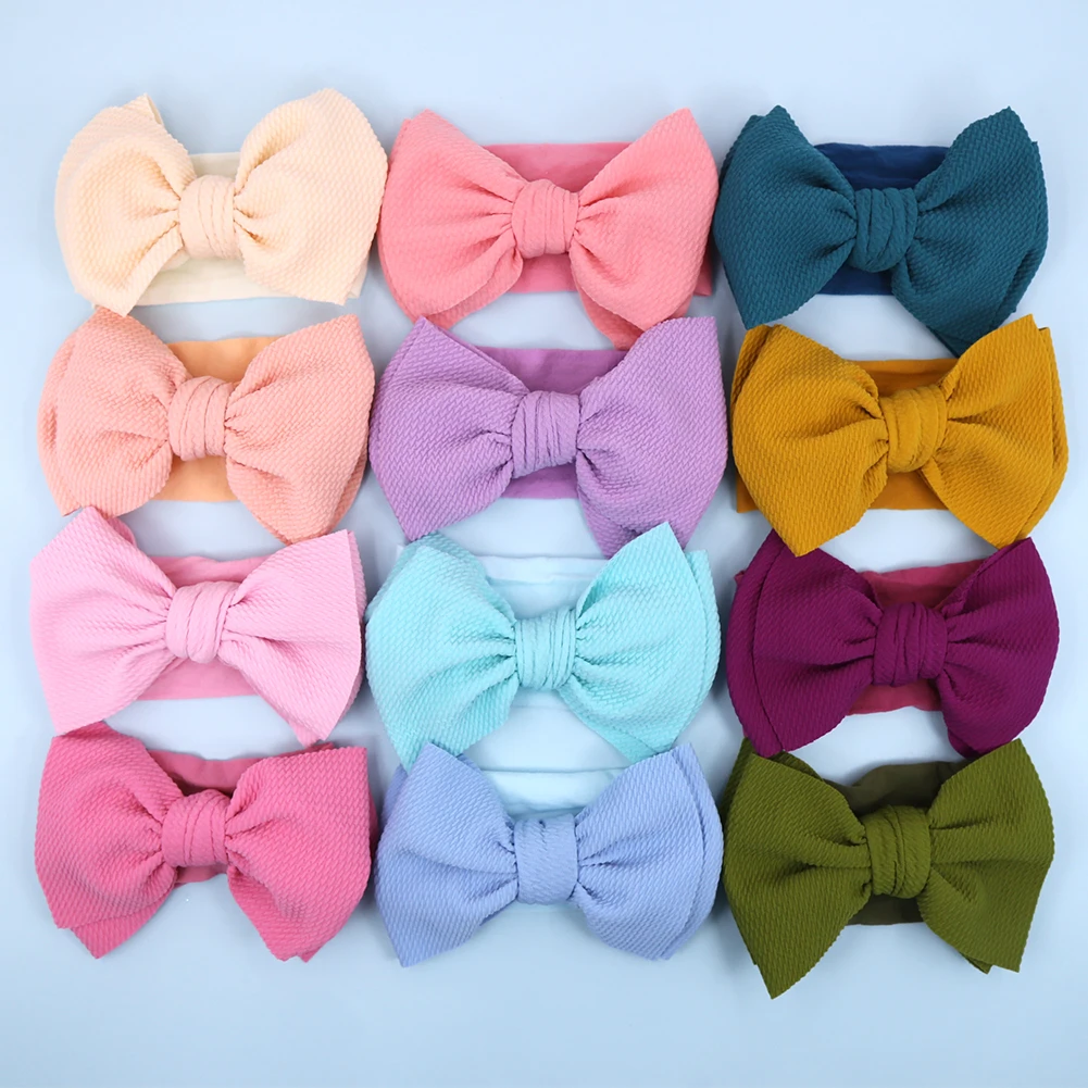 3 шт.лот, вафельная ткань с цветочным принтом, повязка на голову с бантом, тюрбан, нейлоновая эластичная лента для волос, аксессуары для новорожденных девочек