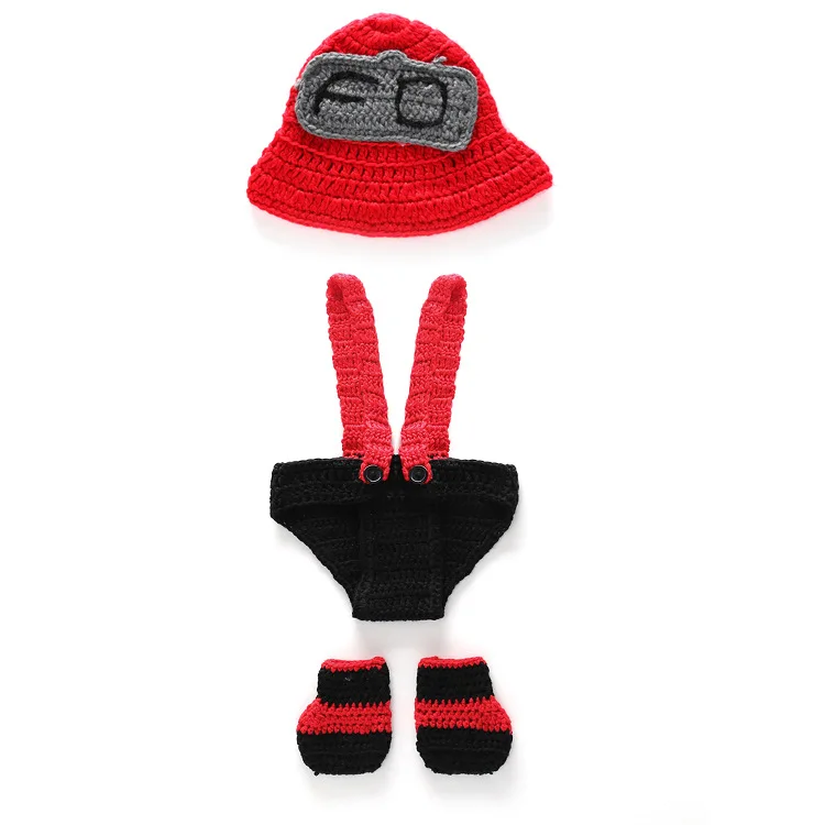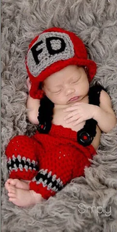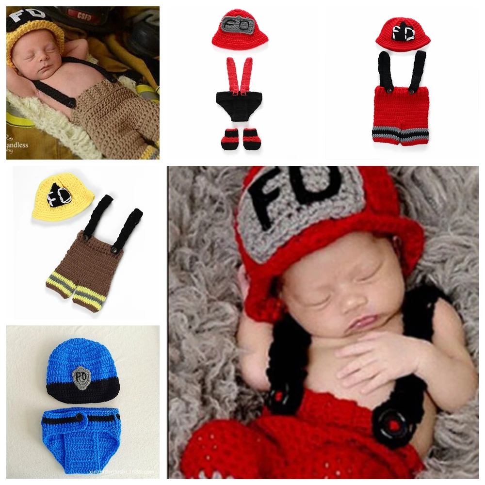 Для новорожденных костюмы пожарных костюм детский костюм для мальчиков и девочек шапка ручной вязки, младенческой фото одежда для малышей, подарок на праздник для Подставки для фотографий