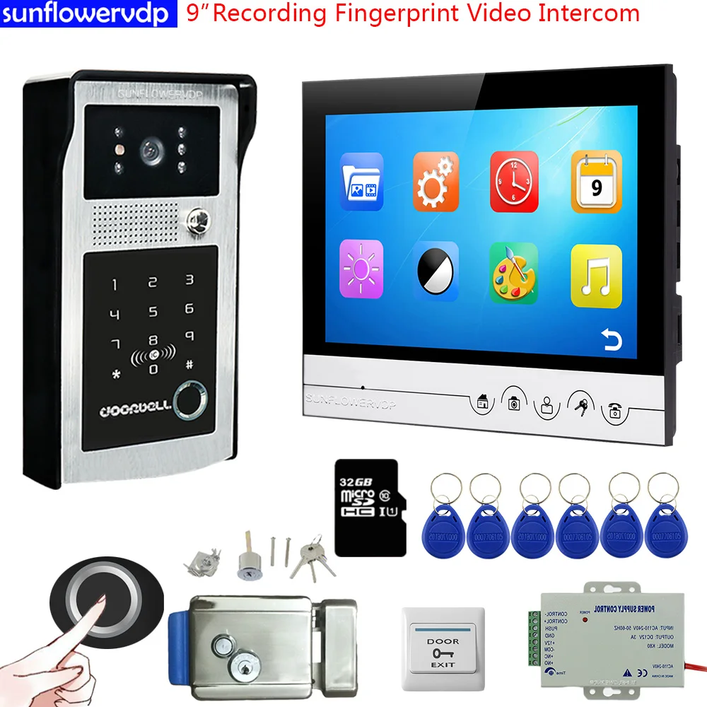 Видеодомофон, 32 ГБ, 9 дюймов, с функцией записи отпечатков пальцев, для дома, с электронным дверным замком