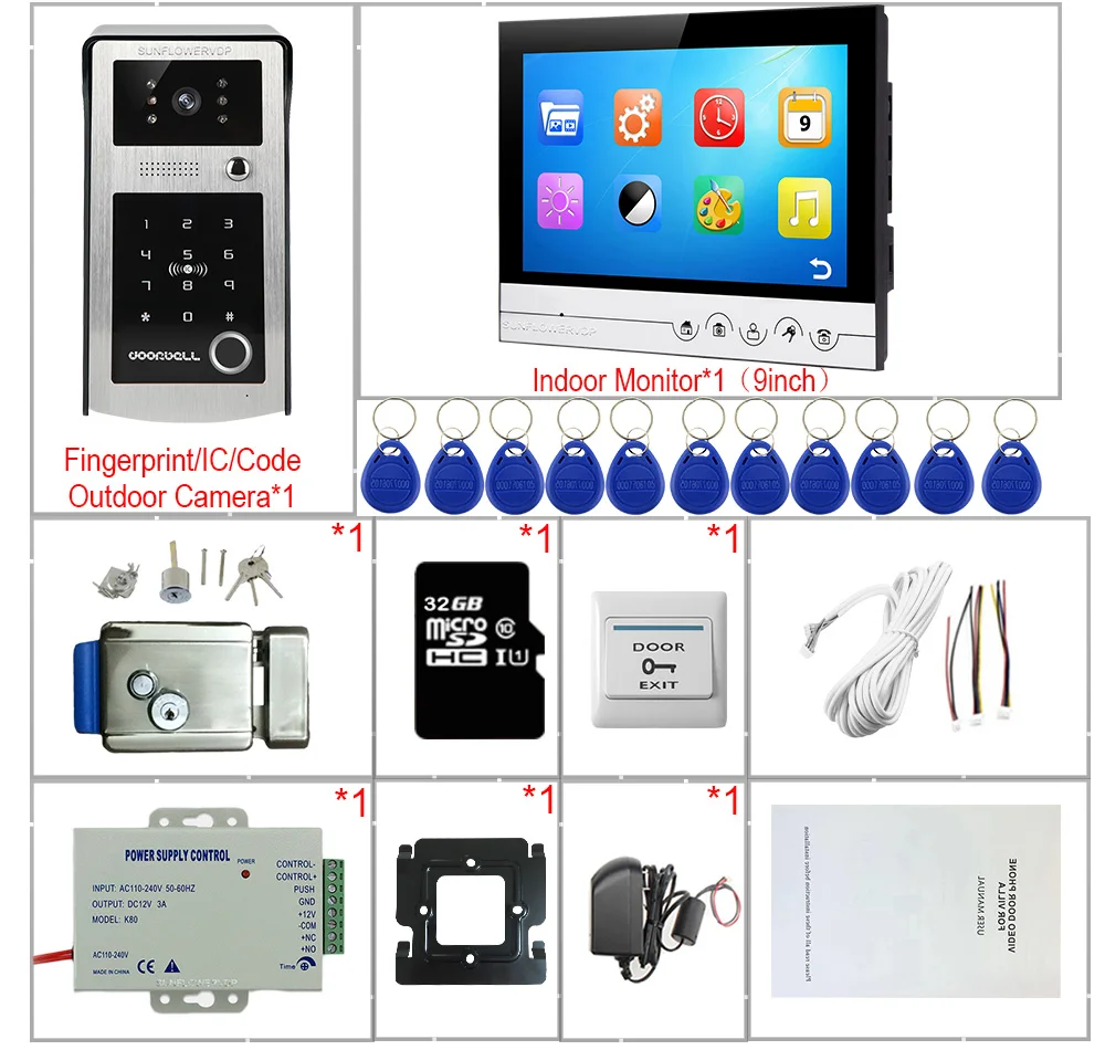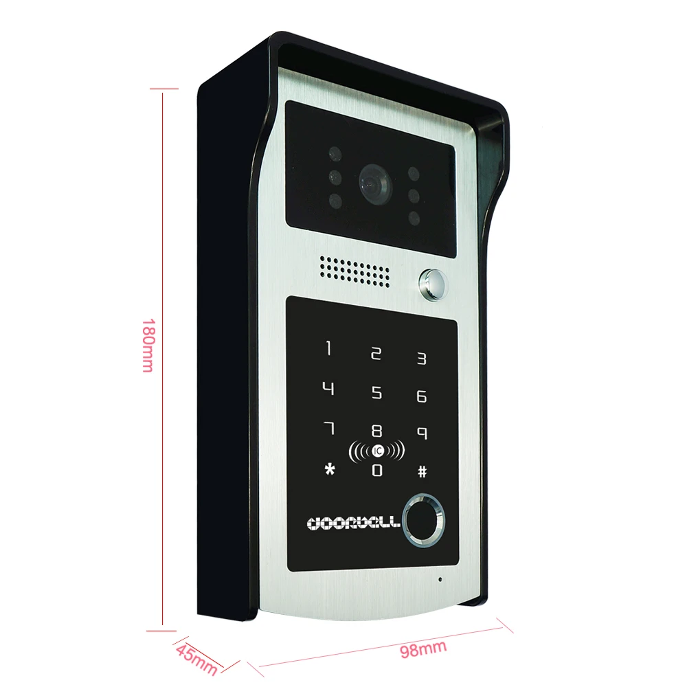 Этот видеодомофон с принтом fignerprint, система дверного звонка поддерживает функции контроля доступа, такие как датчик отпечатков пальцев, пароль, IC-карта, Удаленная разблокировка от внутреннего расширения и т. д. Его легко использовать с безопасной, стабильной и приемлемой производительностью, которая подходит для дома, дачи, школы, банка, больницы, офиса и других мест.