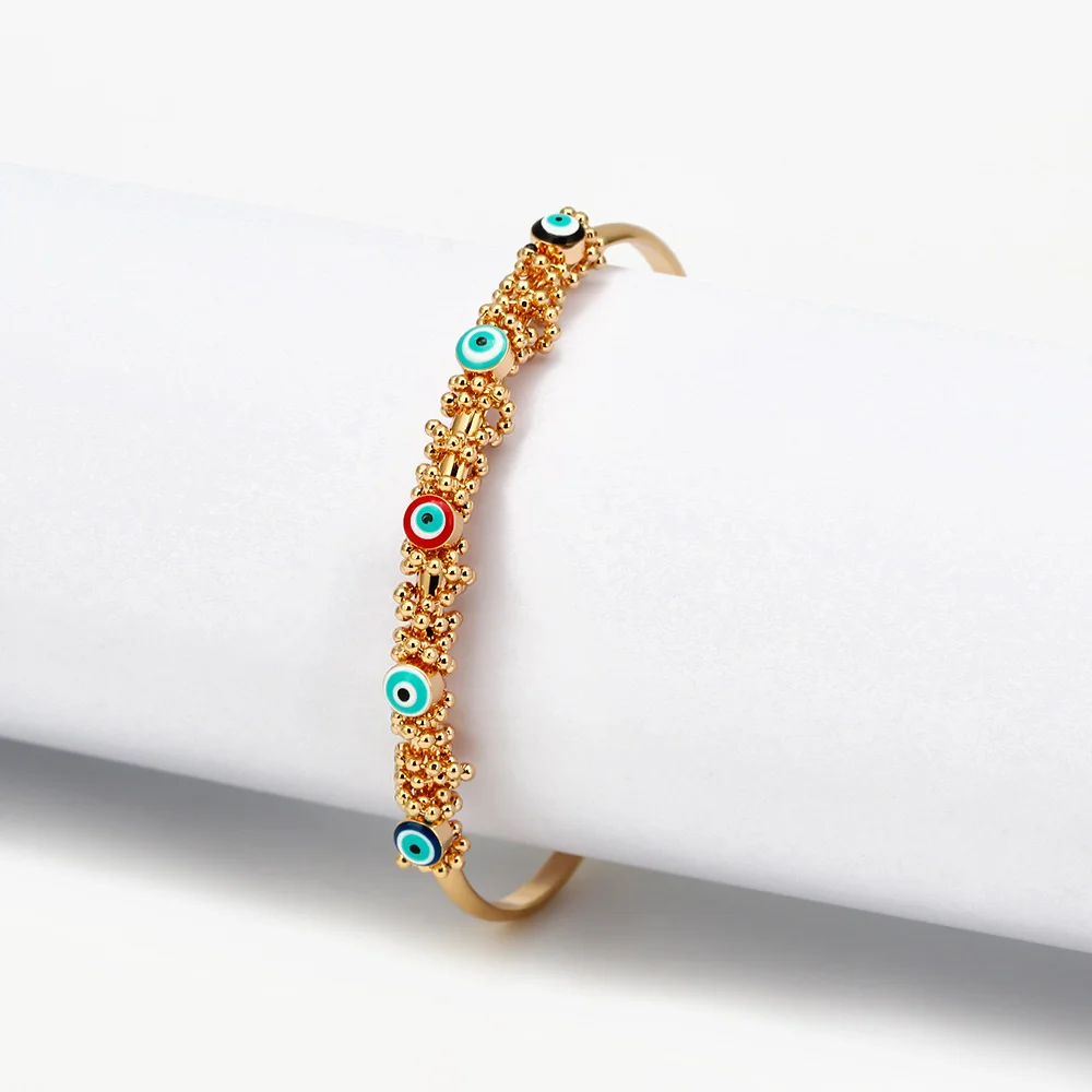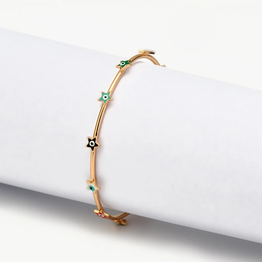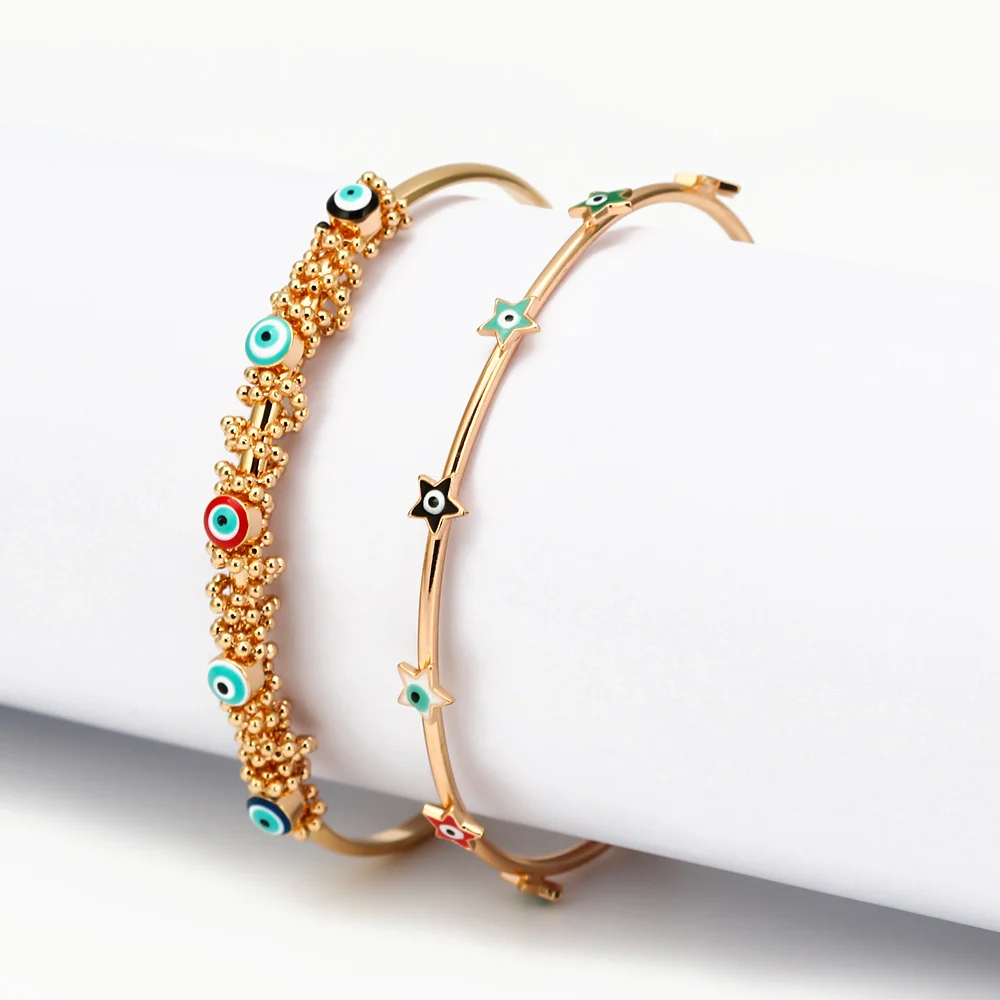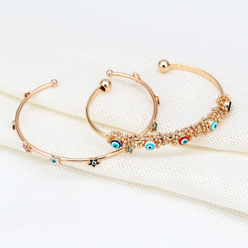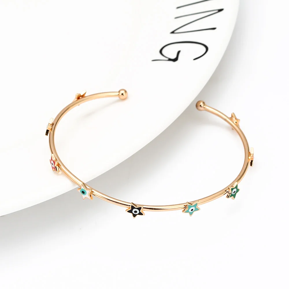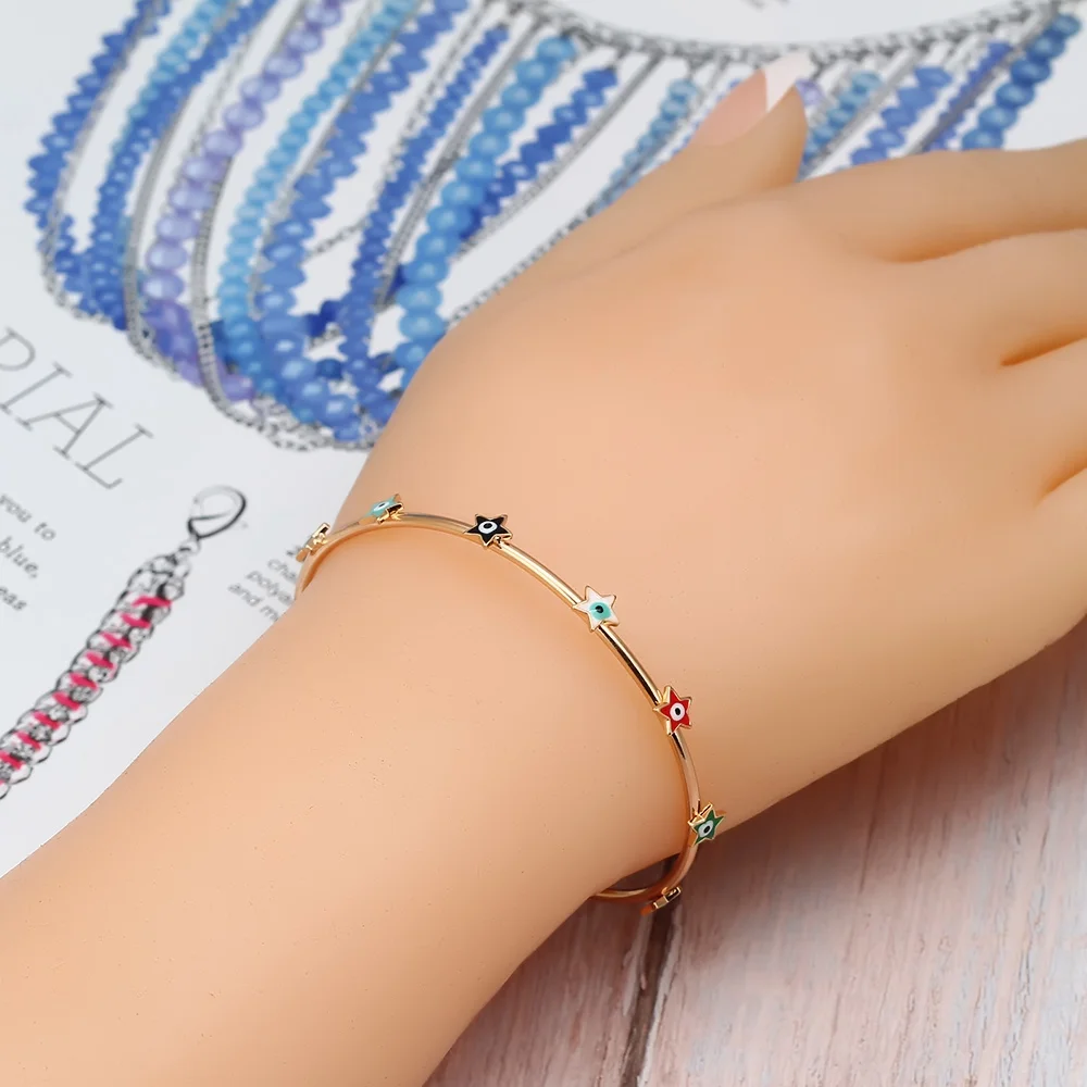Браслет-манжета Женский, медный, многоцветный, со звездой Турецкий Дурной глаз, BE64