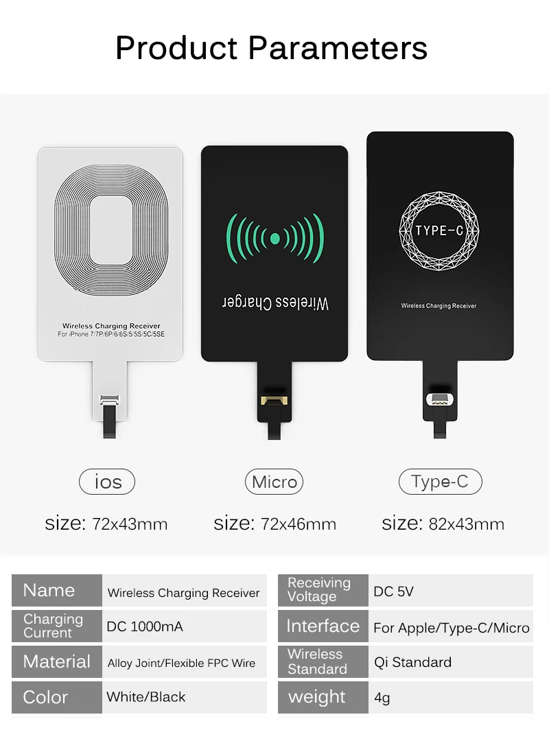 Беспроводная зарядка, приемник, индукционный приемник, адаптер для зарядки Qi для iphone 7, 6, 6S, 5S, Micro USB, Type-C, беспроводная зарядная панель, док