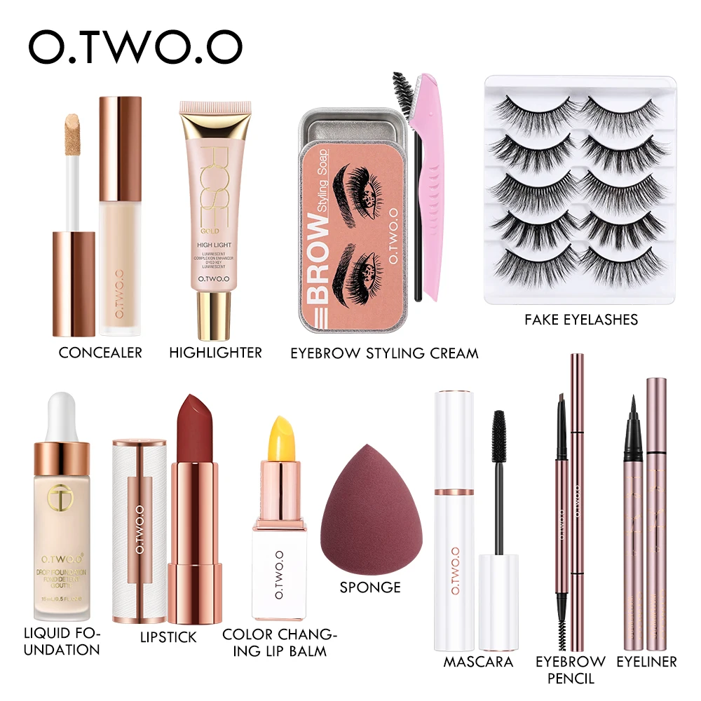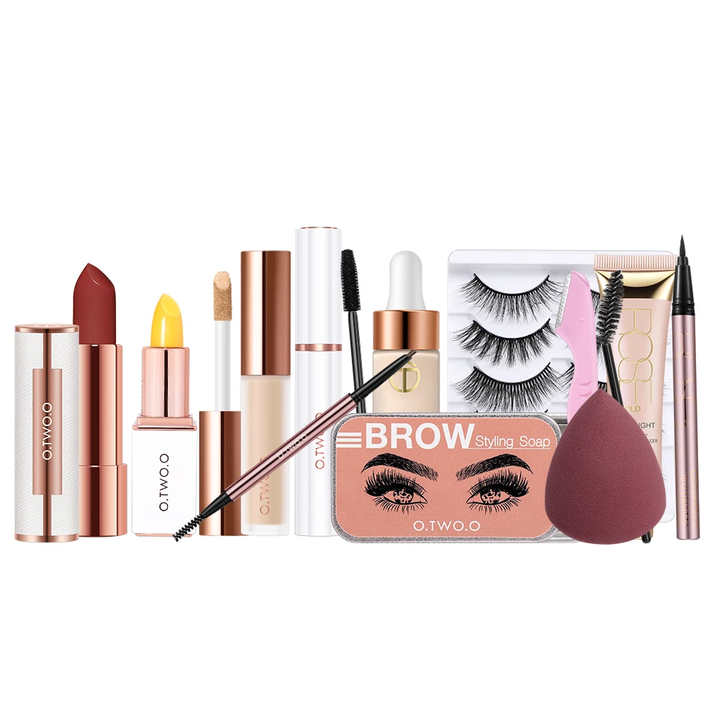 Косметический Набор O.TWO.O 11 шт., Женская Косметическая Помада, брови, макияж, искусственные ресницы, губка, основа, женский подарок