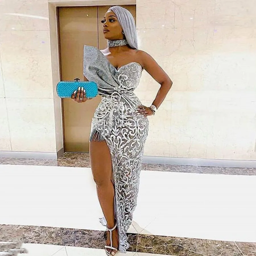 Серые платья Aso Ebi размера плюс для выпускного вечера, сексуальны...