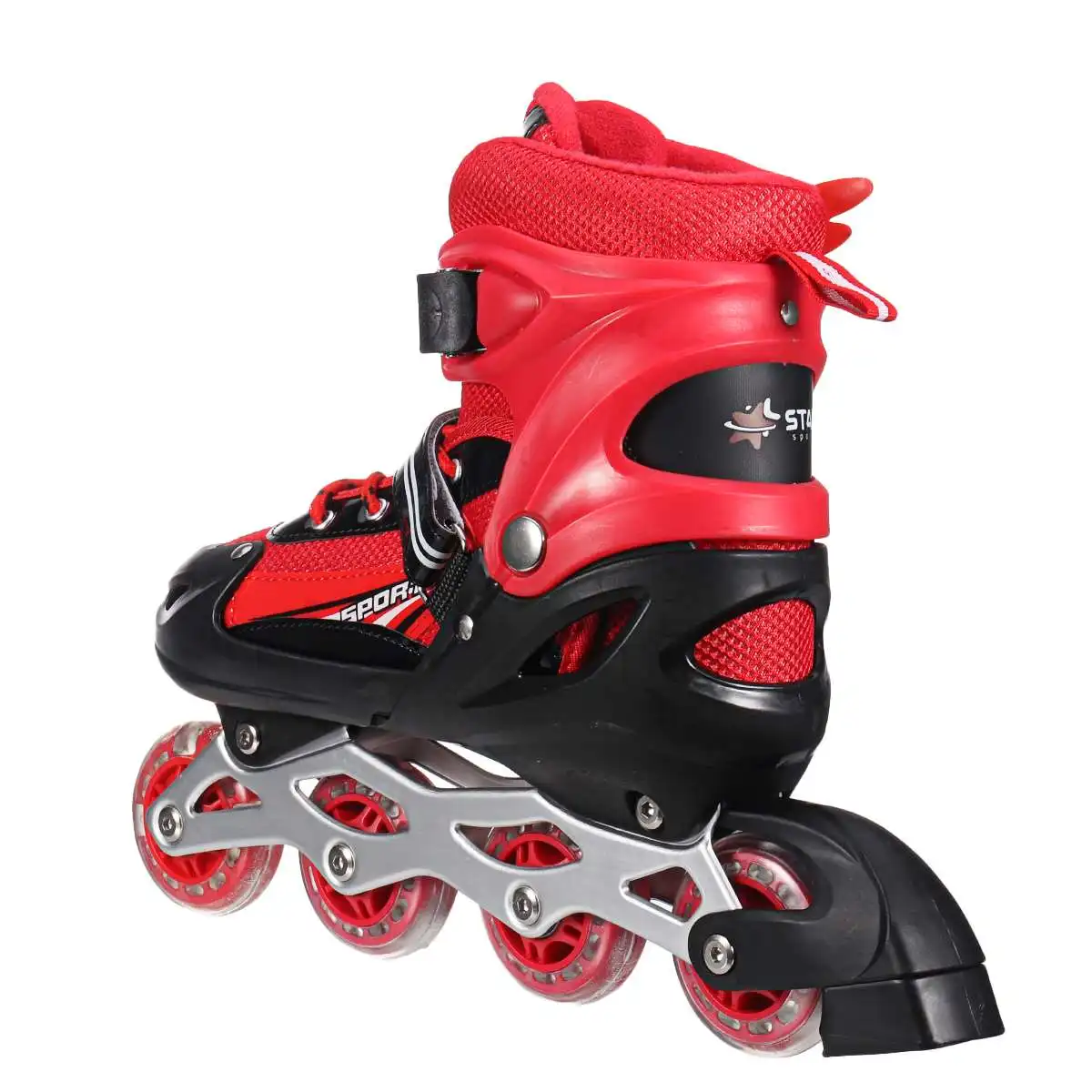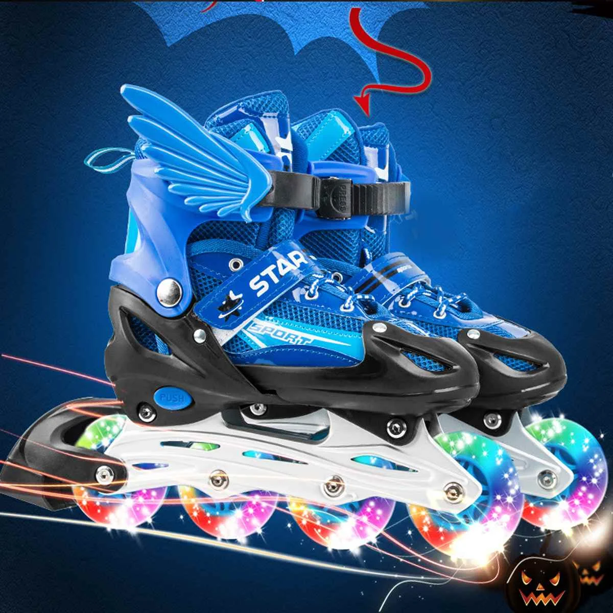 Особенность: -Материал: текстурированный, дышащий композит (сэндвич-сетка добавляет воздухопроницаемости), легко защищает ноги;-Создан в соответствии со строгими стандартами контроля качества, поэтому он имеет стабильную и отличную производительность.-Кронштейн: кронштейн из двух частей из алюминиевого сплава с композитной структурой и хорошим сопротивлением давлению;-Размер: свободно регулируемый (разные Сегменты кода 31 # -- 34 #, 35 # -- 38 #, 39 # -- 42 #);-Корпус обуви: модный, новый материал, хорошая прочность, хороший блеск, износостойкость, отсутствие повреждений от ударов;-Колесо: перфузионное колесо для цветных фруктов с хорошей эластичностью;-Тормоз: износостойкие тормоза нового дизайна;-Пряжка обуви: быстрая эластичная система безопасности; Усиление ремешка