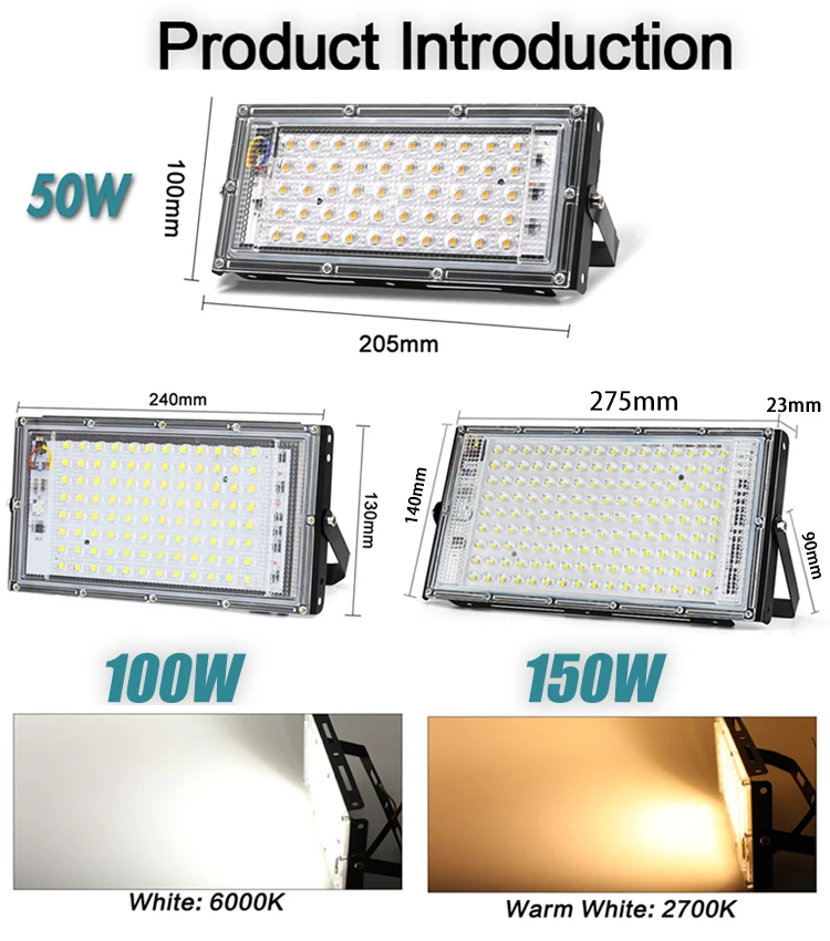 Светодиодный прожектор 50 Вт 100 Вт 150 Вт AC 220 В Наружное освещение Прожектор Светодиодный прожектор Отражатель Сад Уличные фонари Пейзажное освещение