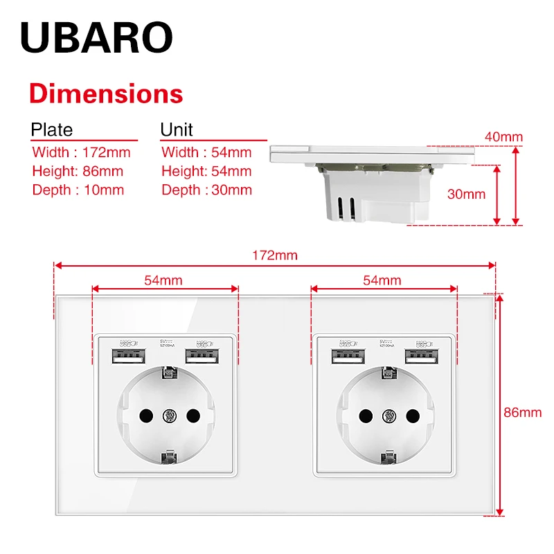 UBARO 172*86 мм ЕСDERU ES стандартная розетка из закаленного стекла, настенная розетка с Usb, 5 В, мА, электрическая розетка, фоторозетка 16 А