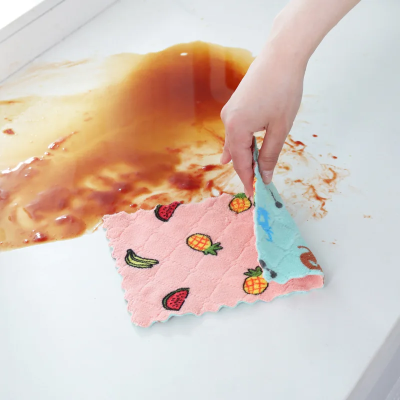 Двухслойная впитывающая салфетка из микрофибры для посуды, антипригарное масло, бытовое чистящее полотенце, кухонные принадлежности для уборки, кухонное полотенце