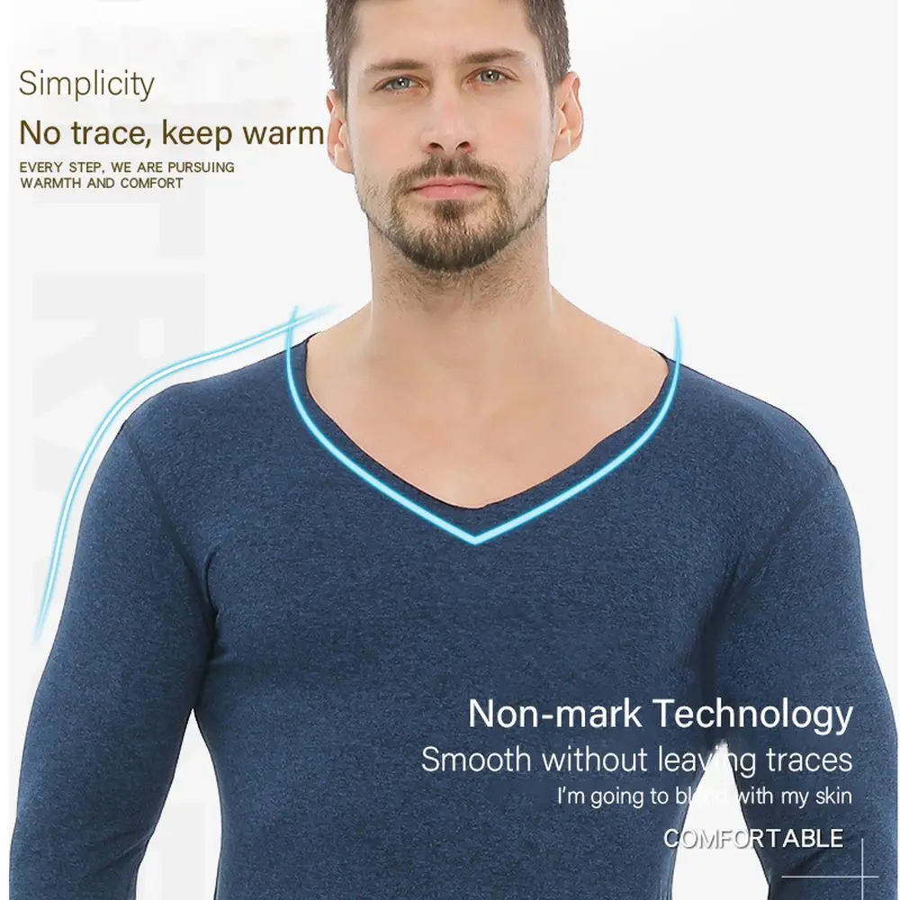 Термобелье мужское, Осень-зима, бесшовное, с V-образным вырезом