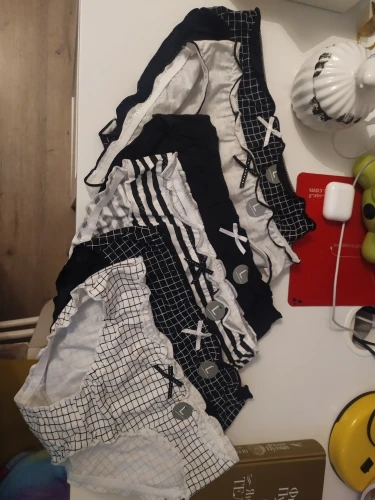 Нижнее белье женское, хлопковое, черное, в клетку, с деревянными уш...
