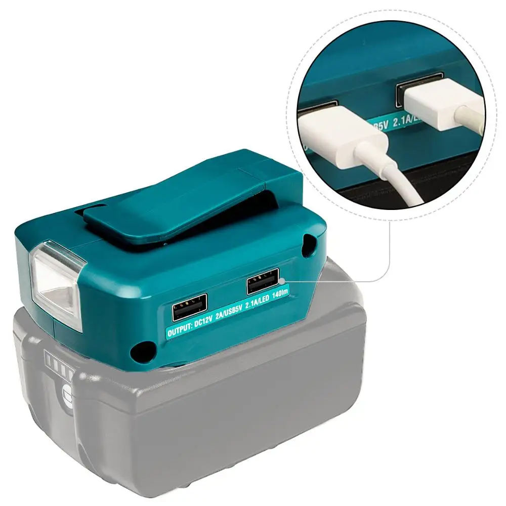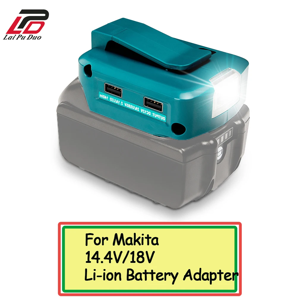14,4 18V литий-ионным Батарея адаптер для Makita Dual USB Порты и разъёмы с светодиодный светильник Точечный светильник для Makita на открытом воздухе