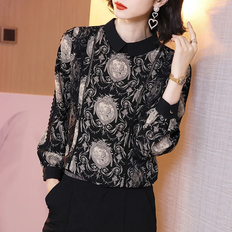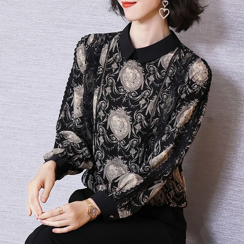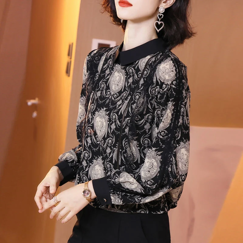 Женская шифоновая блуза, с длинным рукавом-фонариком, в стиле Питера Пэна, свободного покроя, весна-осень, DF0006, женские блузки рубашки