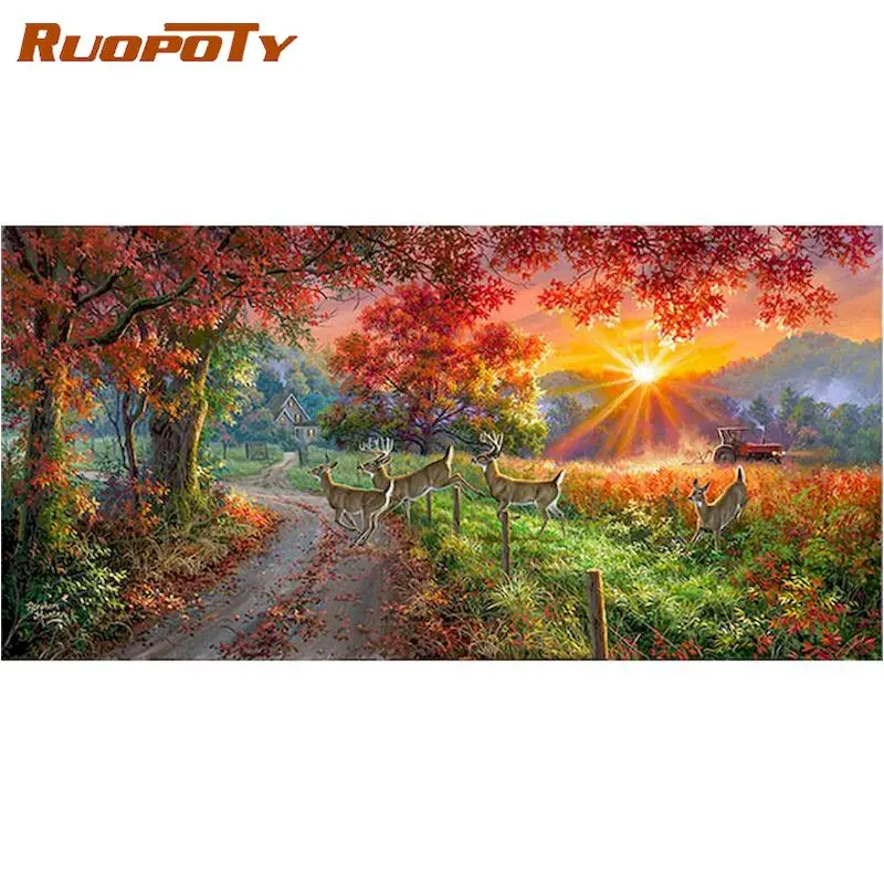 Картина маслом по номерам RUOPOTY для взрослых, осенняя картина по ...