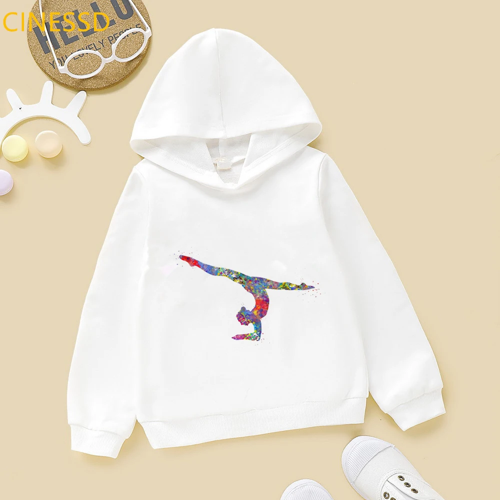Милые белые толстовки для девочек с художественным принтом гимнасти...