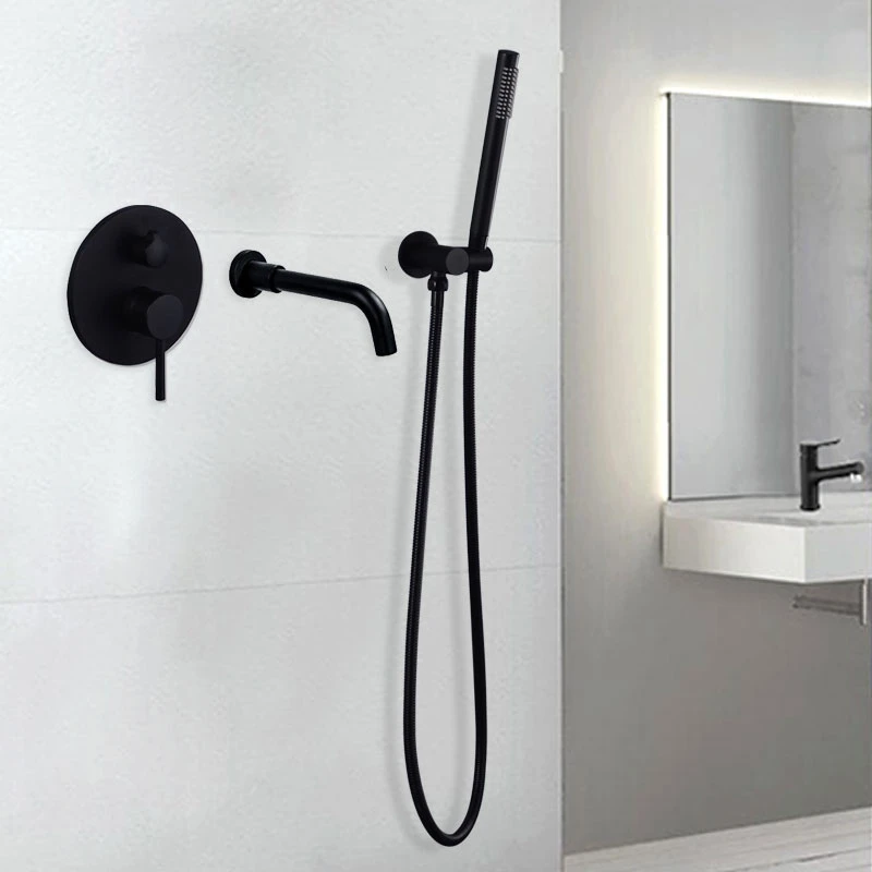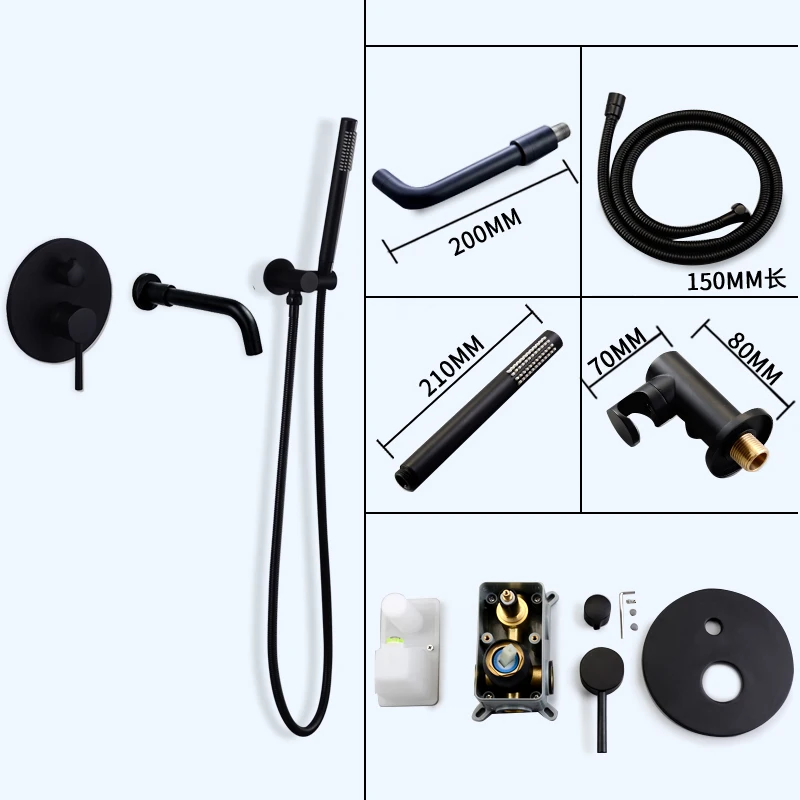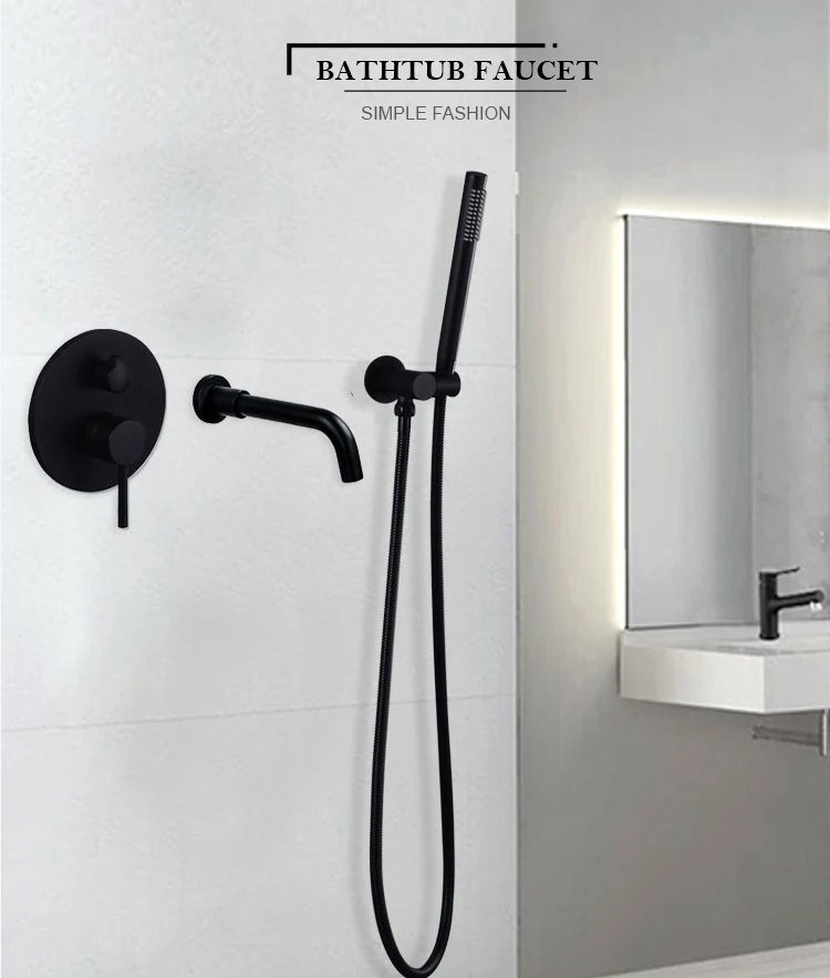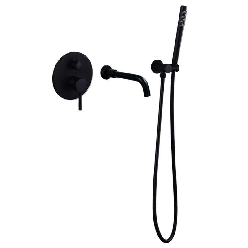 Набор для душа с креплением для ванны, смеситель с клапаном, 2 функции, смеситель для ванны, краны для горячей и холодной ванной комнаты, смеситель для душа, черный носик для ванны