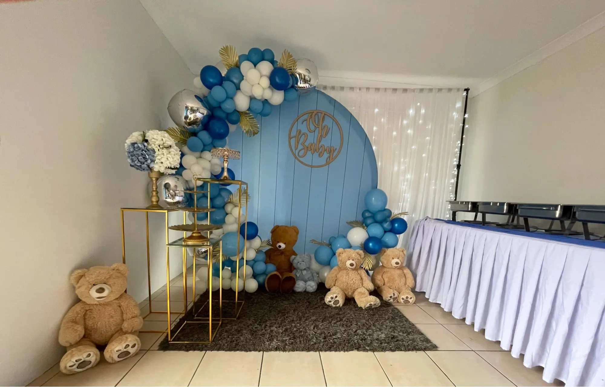 Фон для фотосъемки голубая тема мультфильм Медведь детский душ Деко...