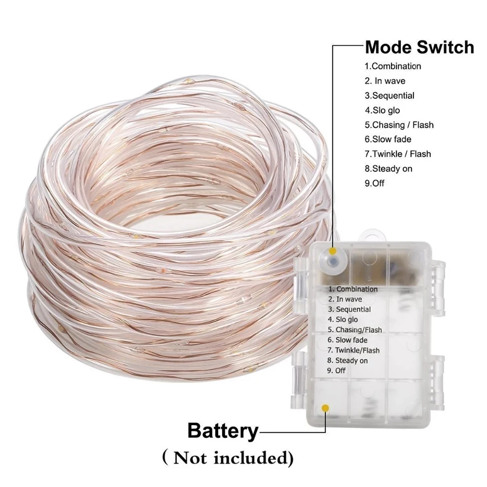 Наружные гирлянды 10 м 100LEDs на батарейках, СВЕТОДИОДНЫЕ веревки, трубчатые гирлянды для патио, Пасхи, Рождества, вечеринки, свадьбы, праздника