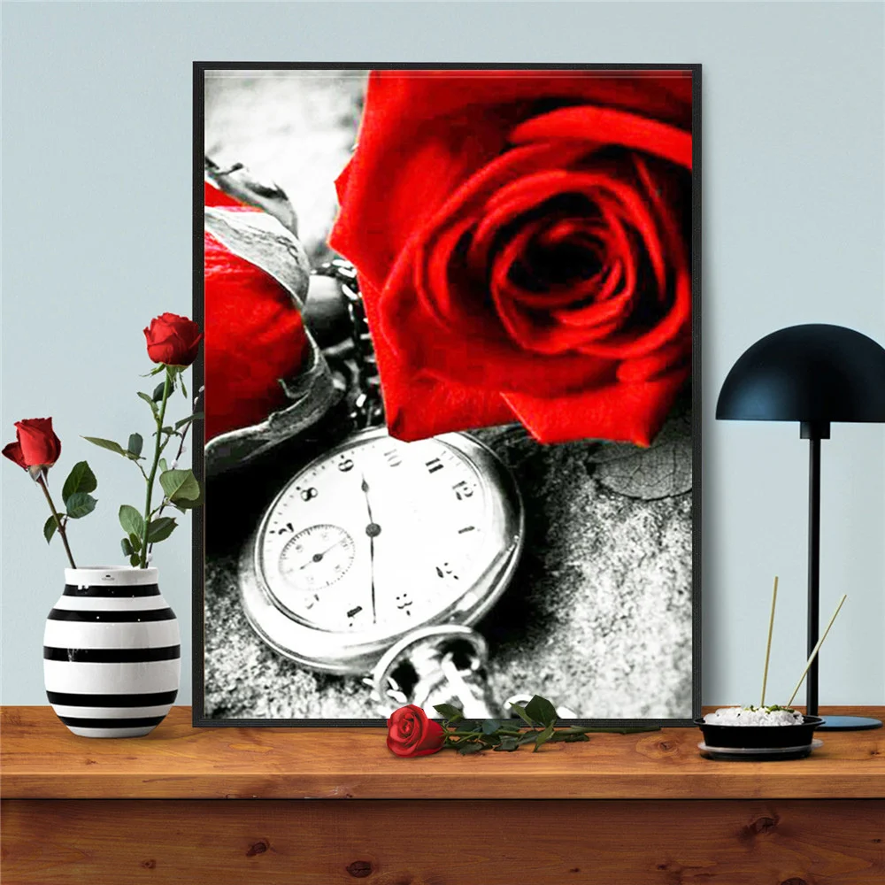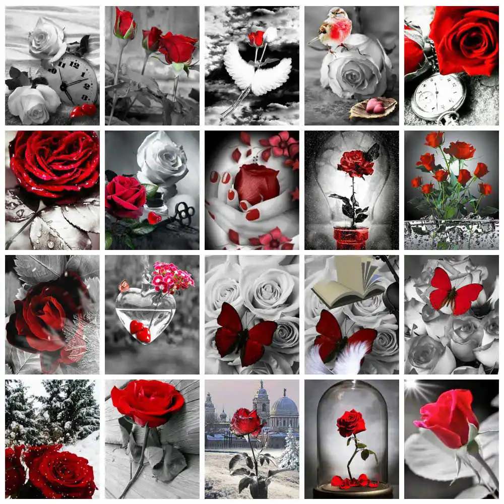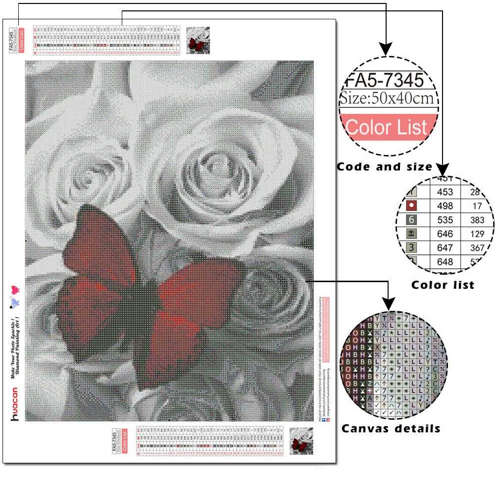 Набор для вышивки стразами HUACAN, алмазная 5D живопись, цветы, ром...
