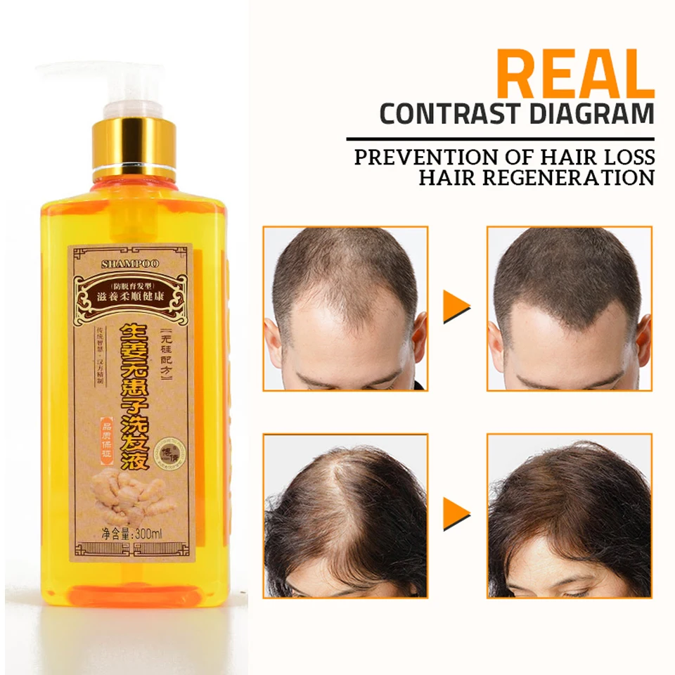 Натуральный профессиональный шампунь для волос с имбирем 300 мл, быстро восстанавливает густые волосы, толще, шампунь против выпадения волос