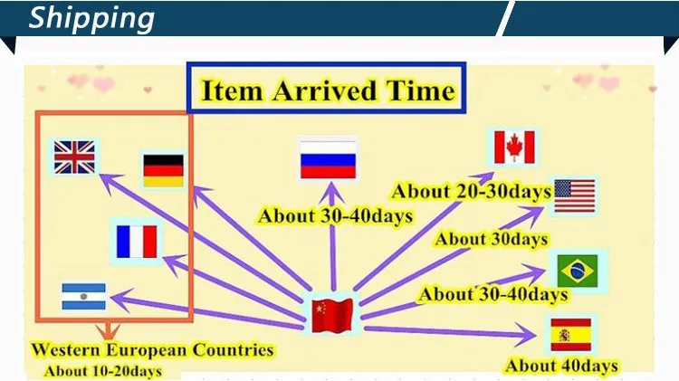 EMS, это занимает около 5-29 дней во всем мире.Другие перевозчики, такие как TNT, DHL, FEDEX, займут около 3-9 дней.